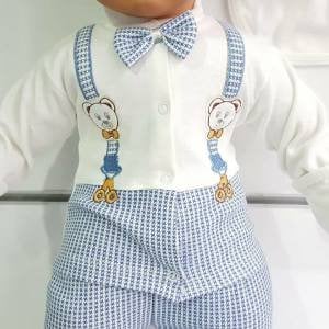 Ayıcık Askılı Papyonlu Mavi 5 li Erkek Bebek Hastane Çıkış Seti