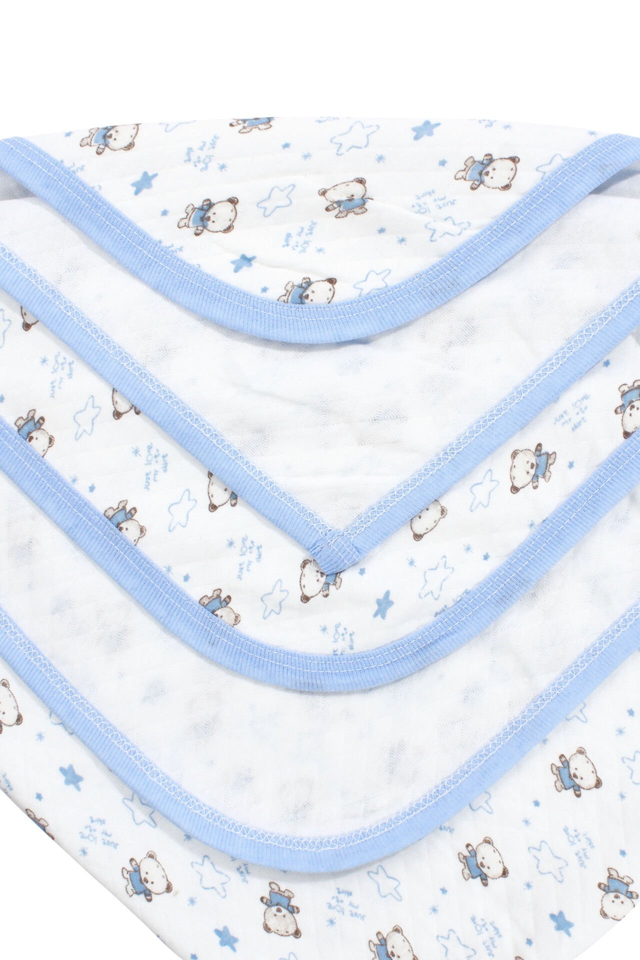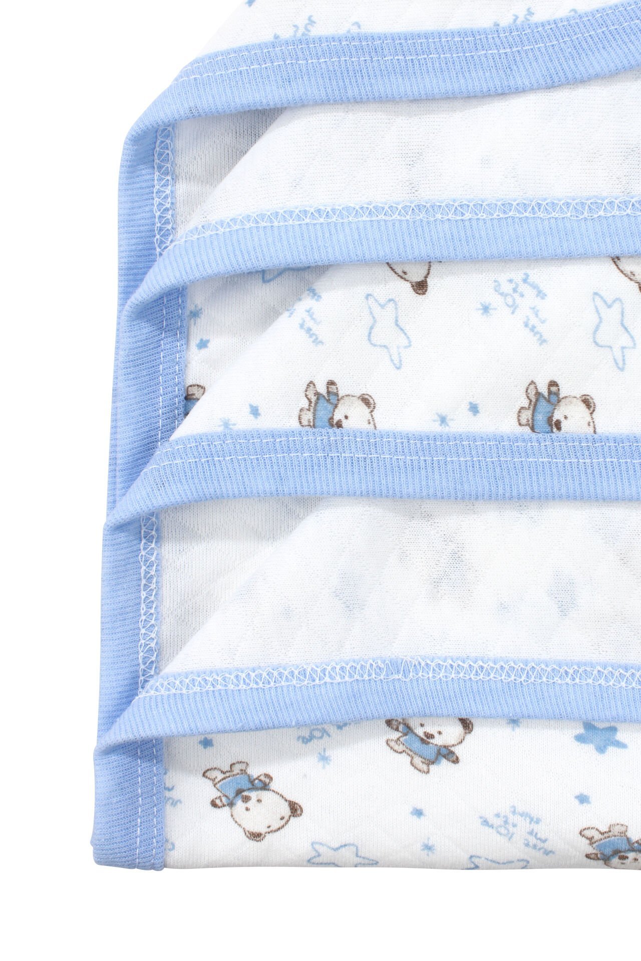 Ayıcık Desenli Penye Tek Kat Krem Açık Mavi Bebek Battaniye (80x80 cm)