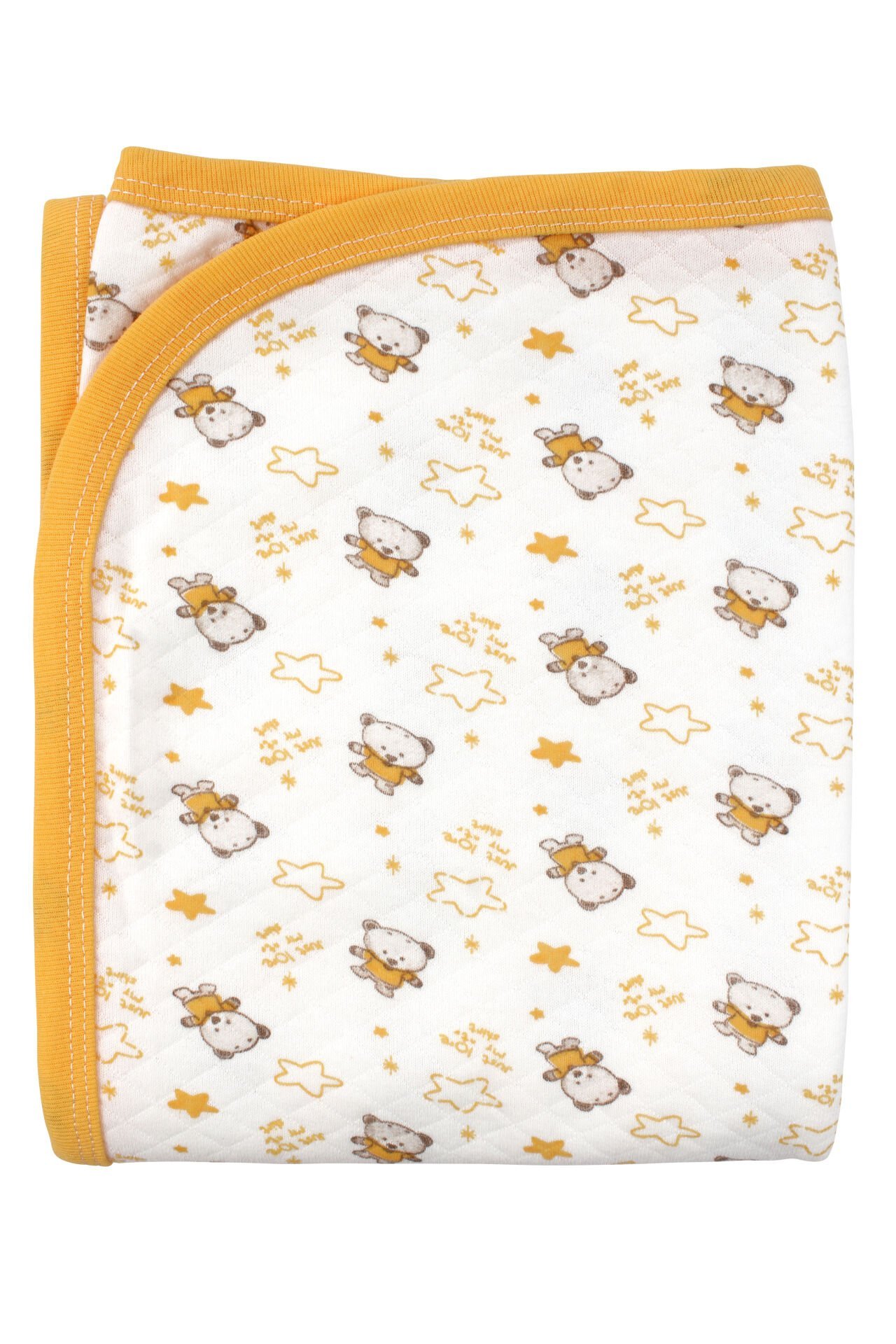 Ayıcık Desenli Penye Tek Kat Krem Sarı Bebek Battaniyesi