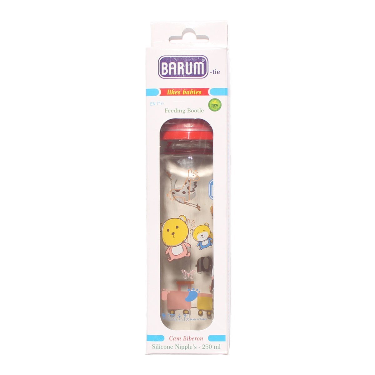 Barum Cam Leylekli Teren Desenli Bebek Biberon Kırmızı 250 ml