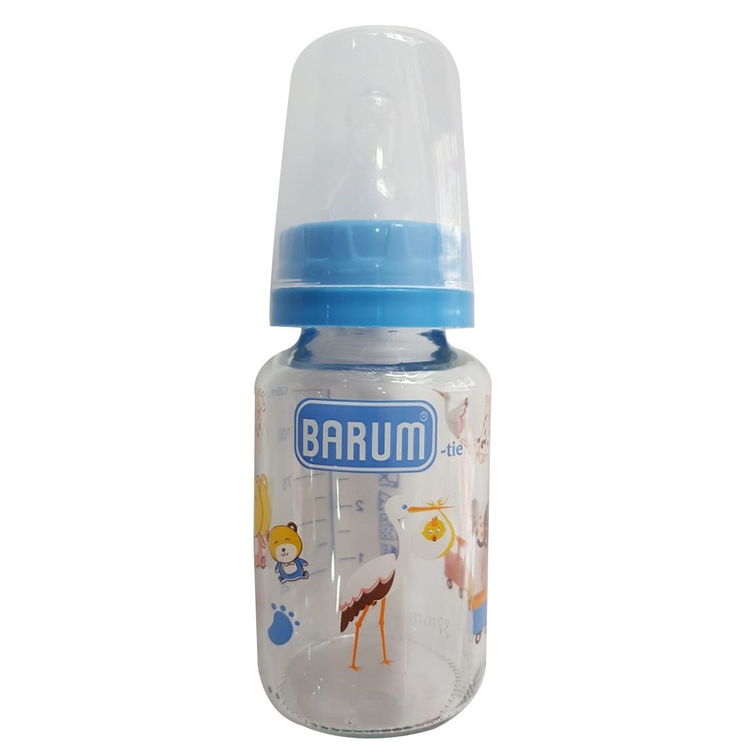 Barum Cam Leylekli Teren Desenli Bebek Biberon Mavi 125 ml