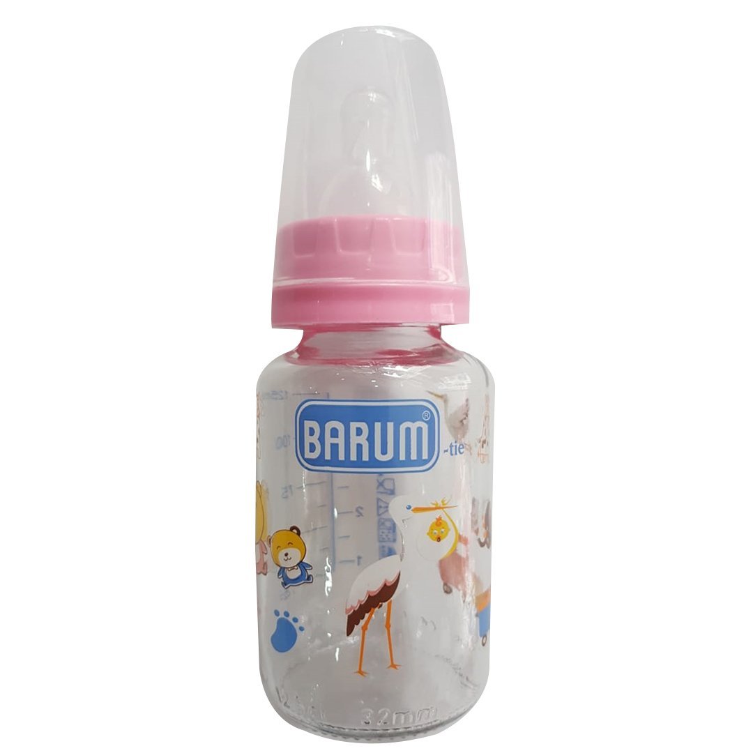 Barum Cam Leylekli Teren Desenli Bebek Biberon Pembe 125 ml