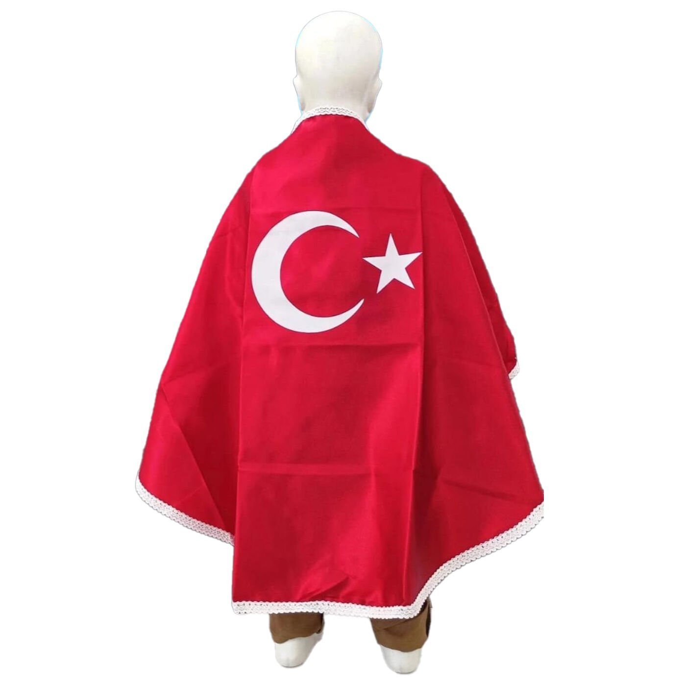 Ay Yıldızlı Bayrak Pelerin, boyundan bağlamalıdır çocuklara rahat bir kullanım sağlamaktadır.