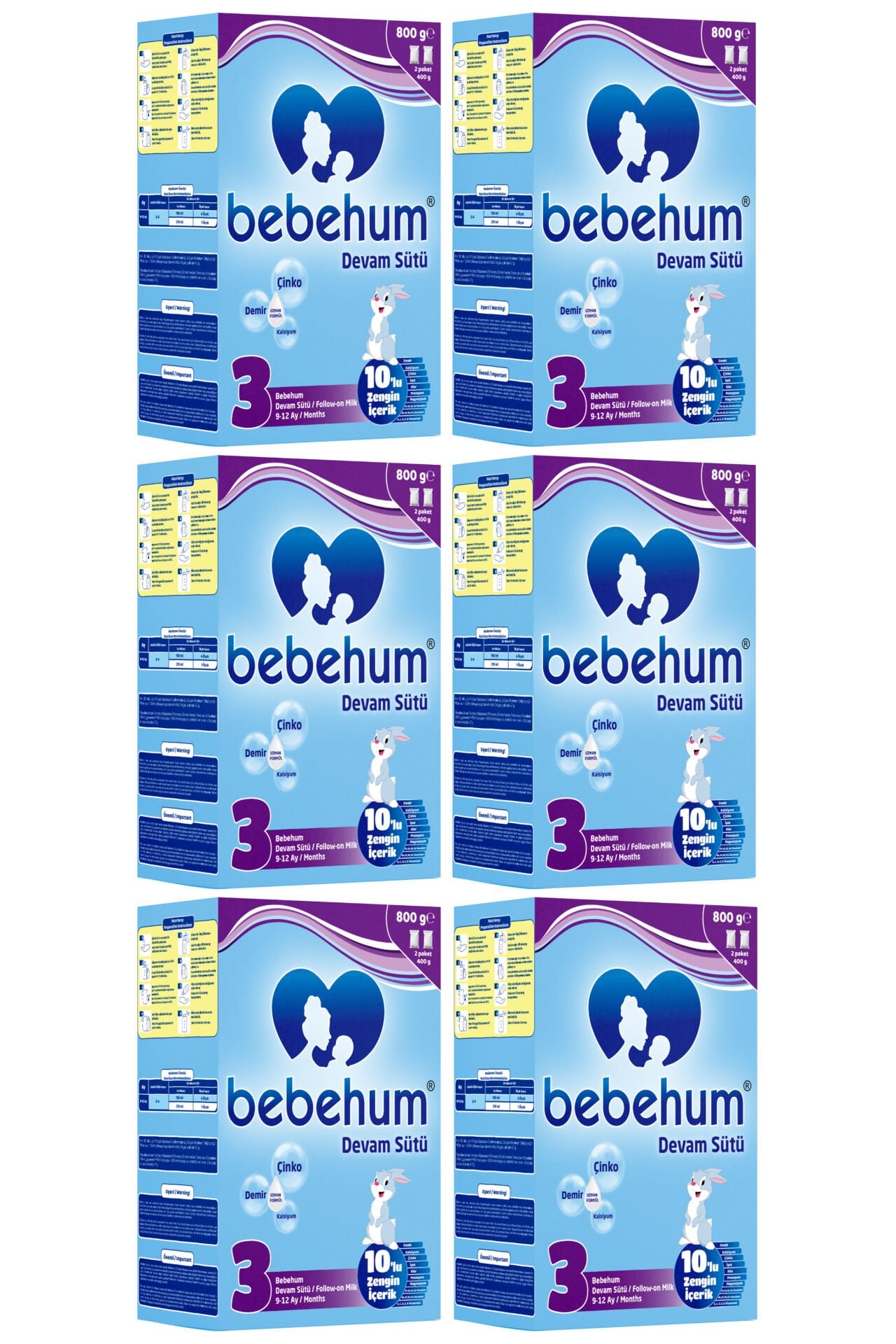 Bebehum 3 No Devam Sütü 9-12 Ay 800 gr x 6 Adet