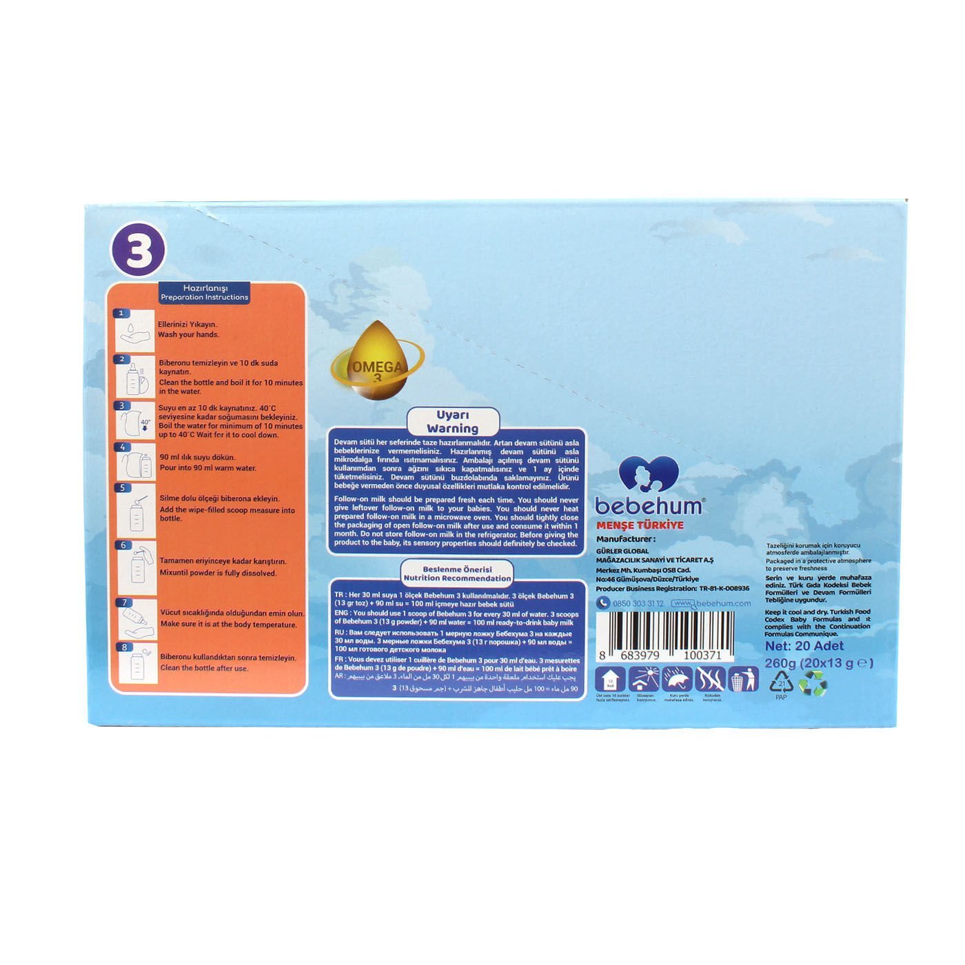 Bebehum 3 Numara Tek Kullanımlık Bebek Devam Sütü 20 Adet