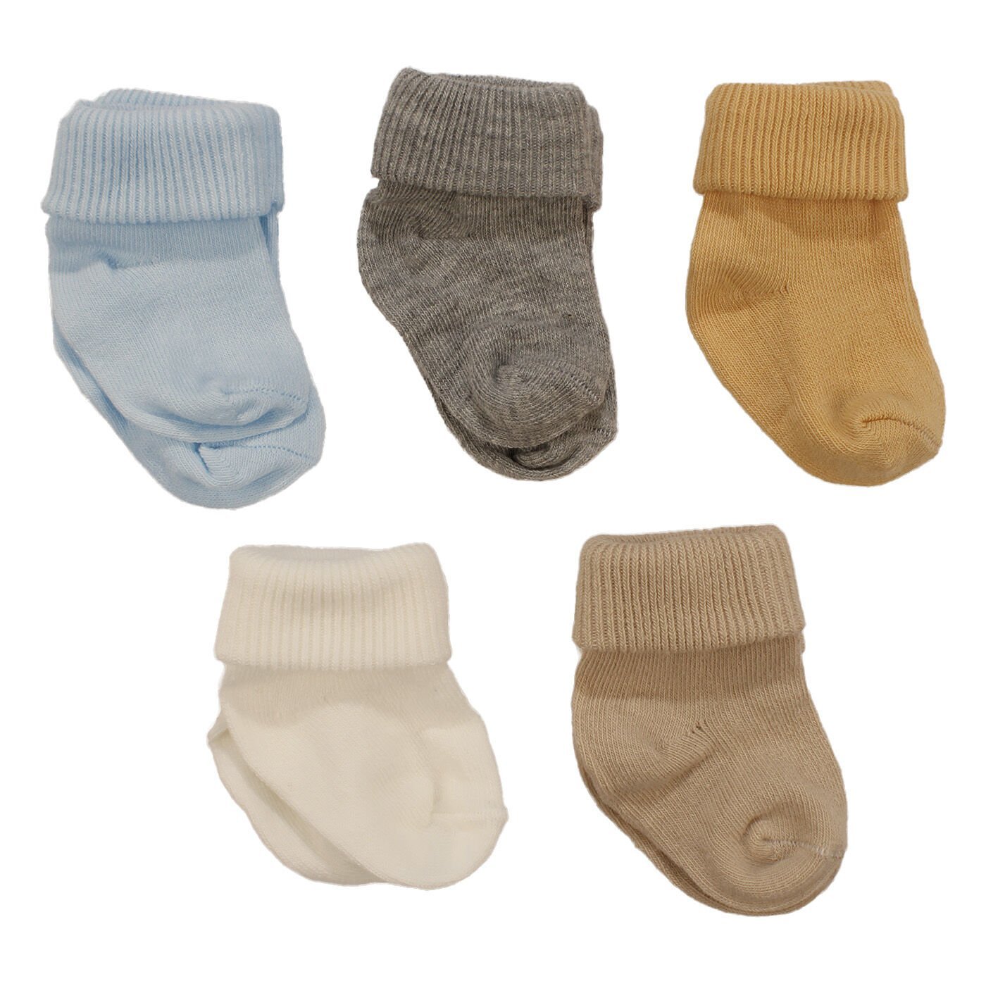 Bej Sarı Gri 5'li Çorap Set 0-6 Ay