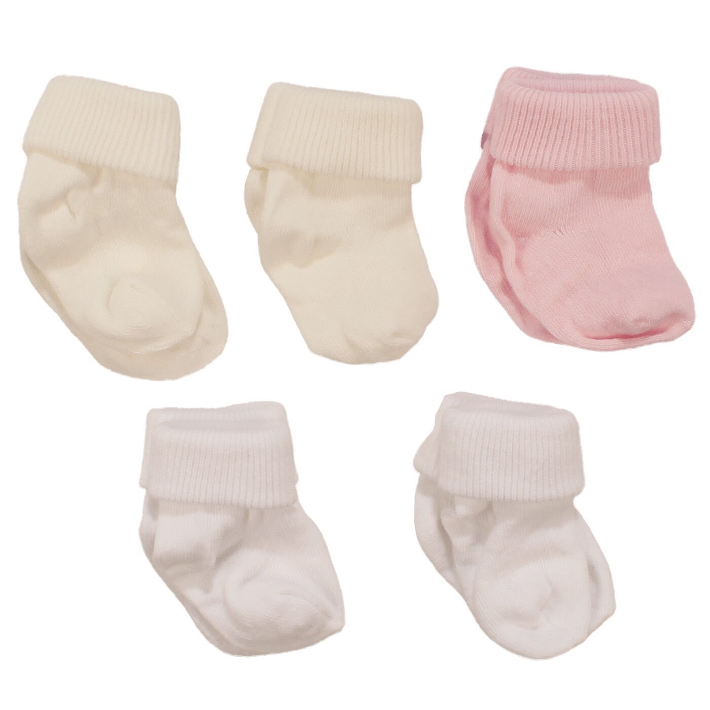 Beyaz Pembe Ekru 5'li Çorap Set 0-6 Ay