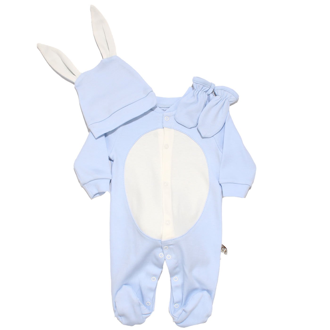 Beyaz Ponponlu Şapkalı Mavi Tavşan Tulum