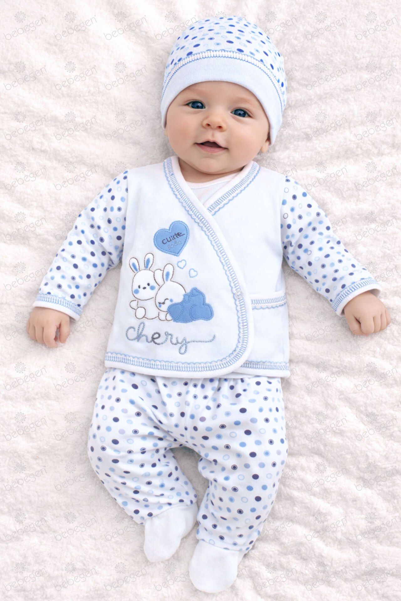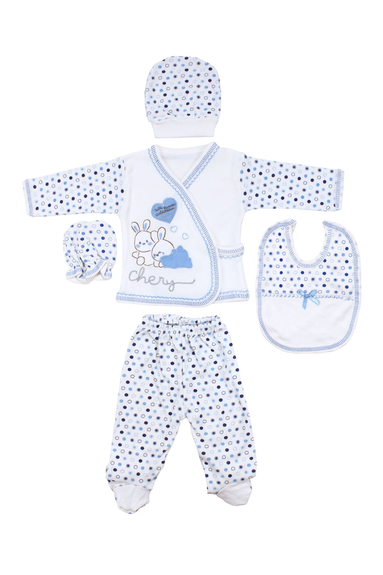 Chery Kalpli Açık Mavi 5 Parça Erkek Bebek Hastane Çıkış Seti