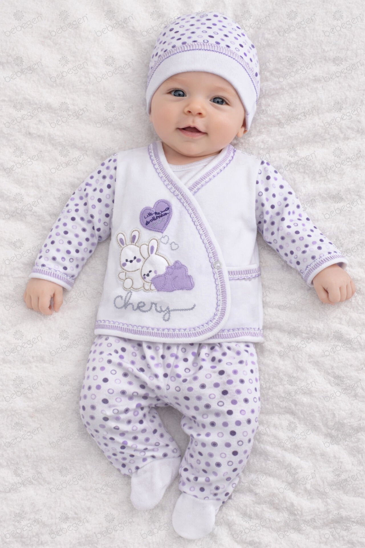 Chery Kalpli Mor 5 Parça Kız Bebek Hastane Çıkış Seti