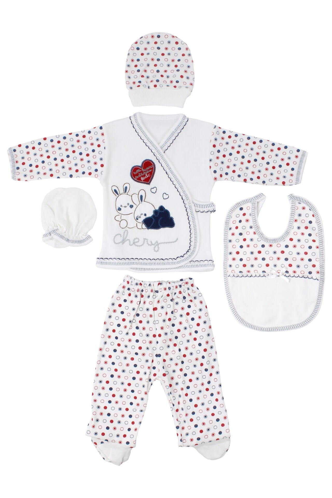 Chery Kalpli Tavşan Laci Kırmızı 5 li Bebek Hastane Çıkış Seti