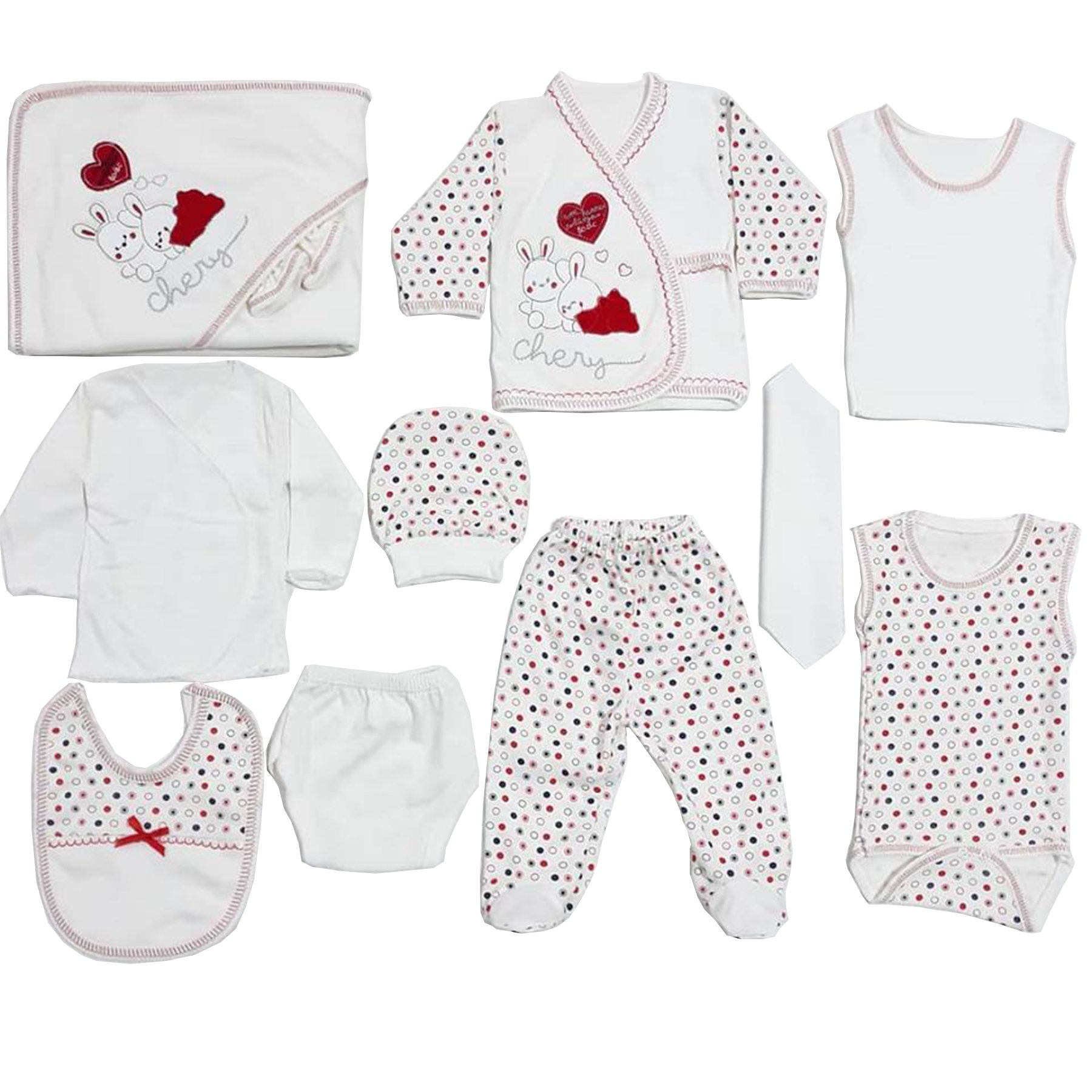 Chery Kırmızı Kalpli Tavşan Puanlı 11 Parça Hastane Çıkış Seti