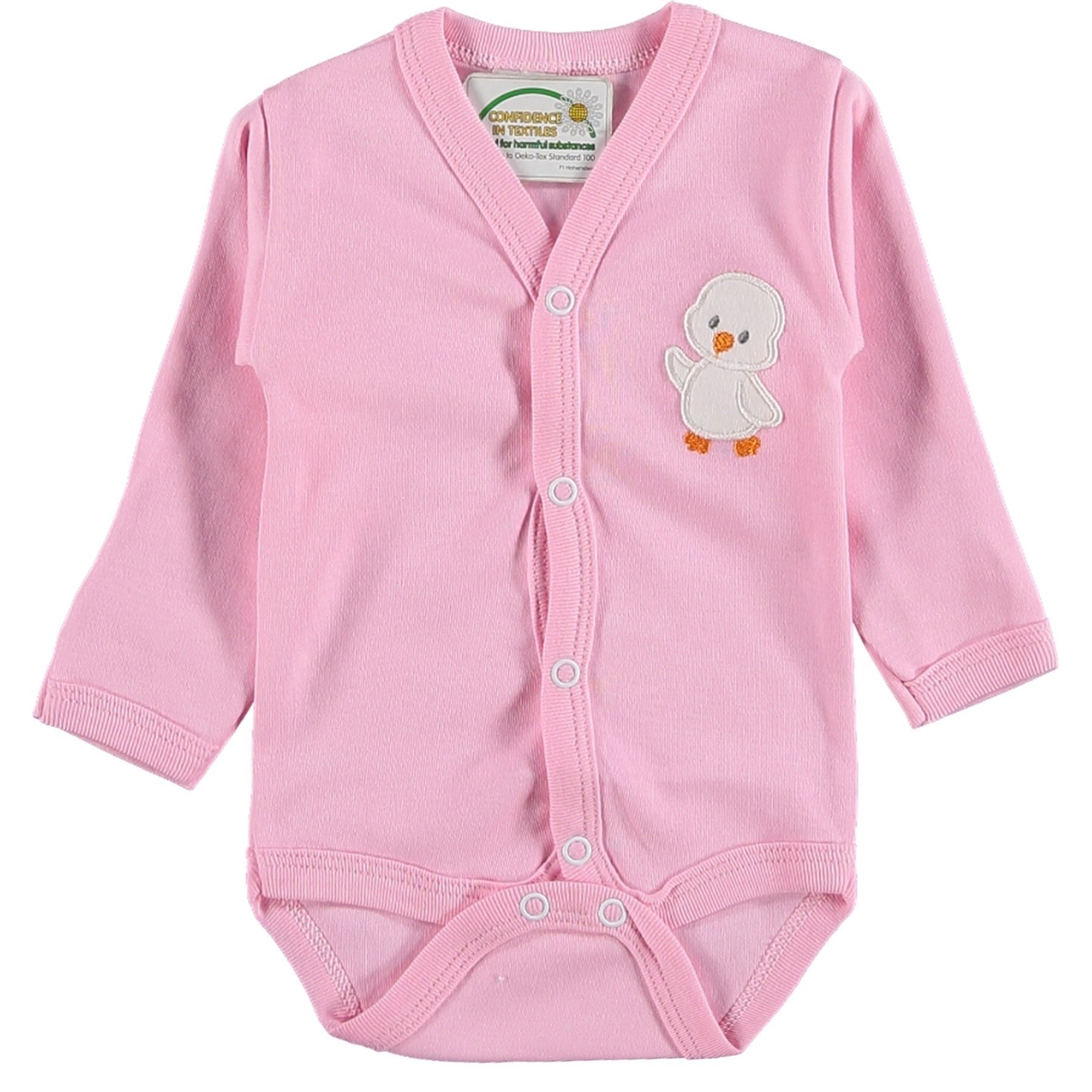 Civciv Nakışlı Kendinden Eldivenli Uzun Kollu Çıtçıtlı Pembe Zıbın