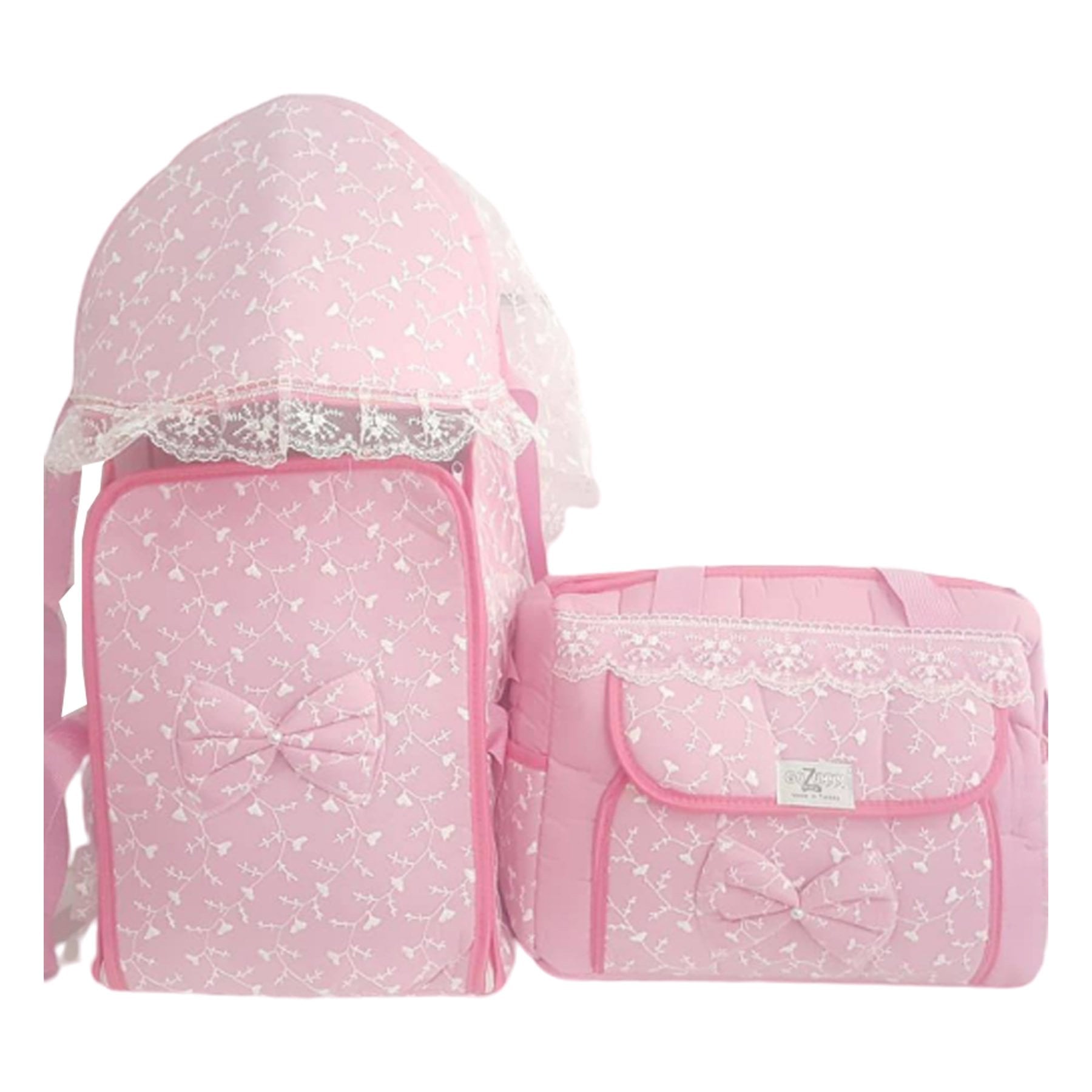 Dantelli Pembe Lüks 2 li Kız Bebek Taşıma Seti