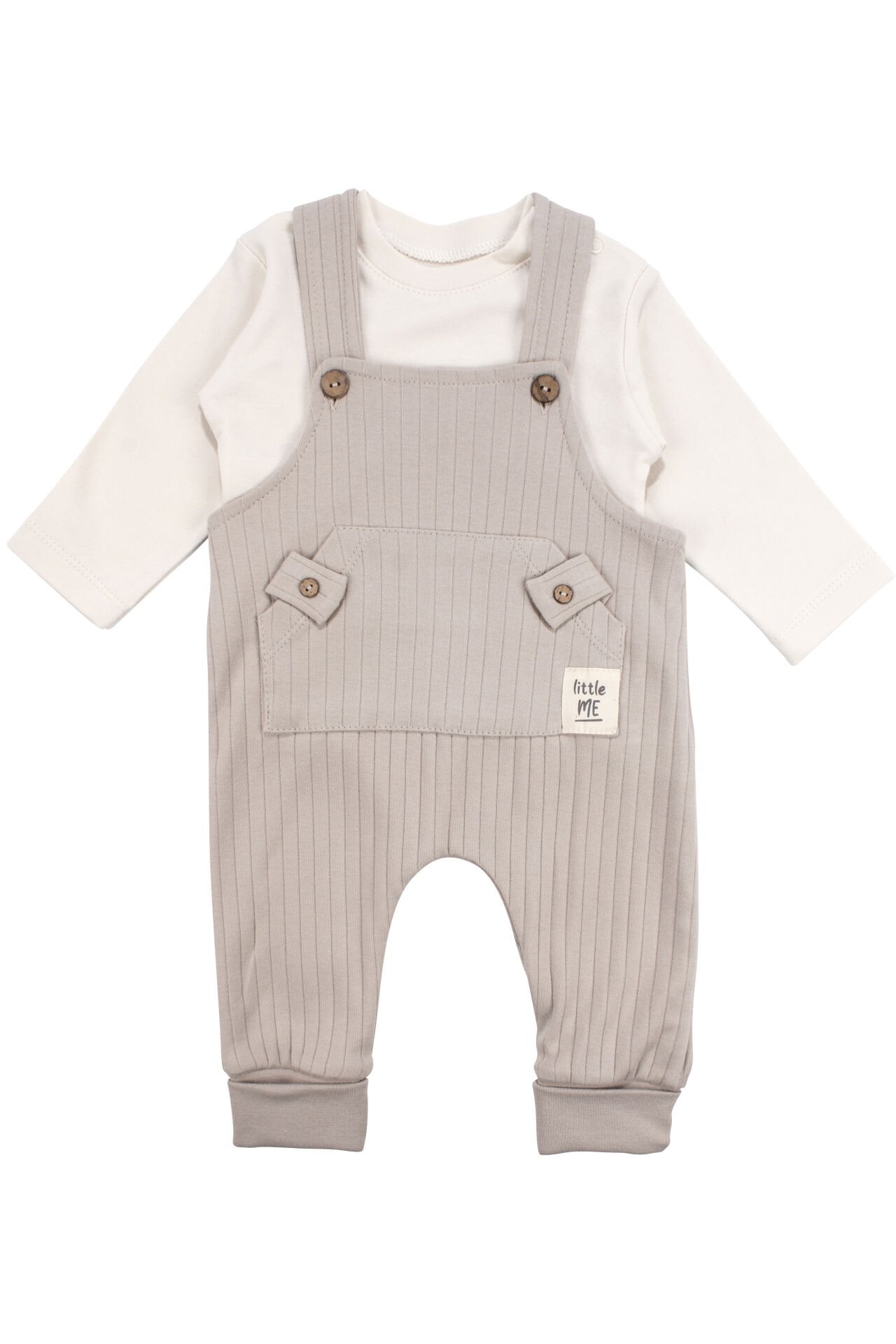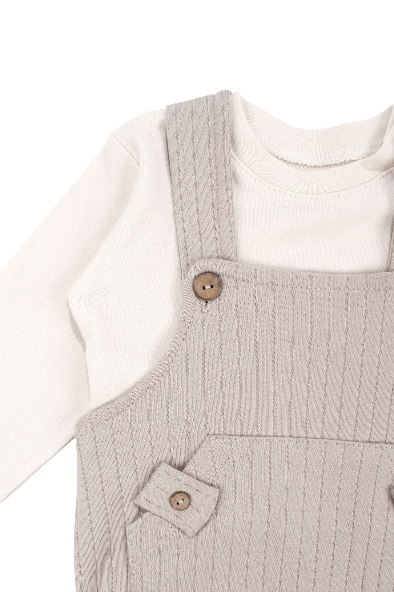 Erkek Bebek Bej Çizgili Cepli Salopetli Badili Tulum
