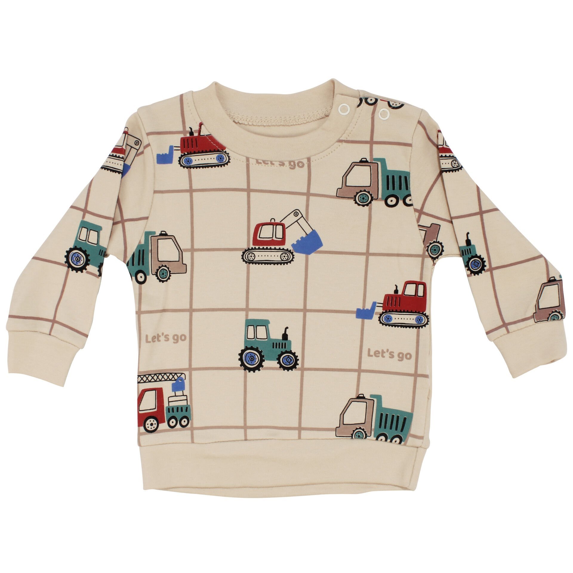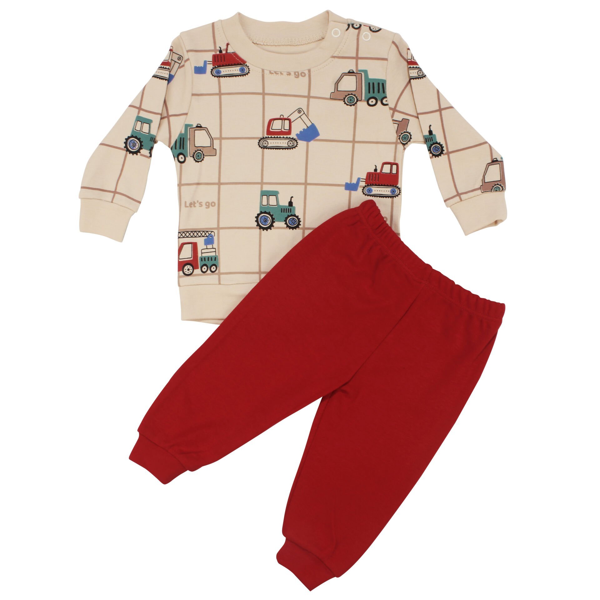 Erkek Bebek Bej Kırmızı Traktör Baskılı 2'li Takım