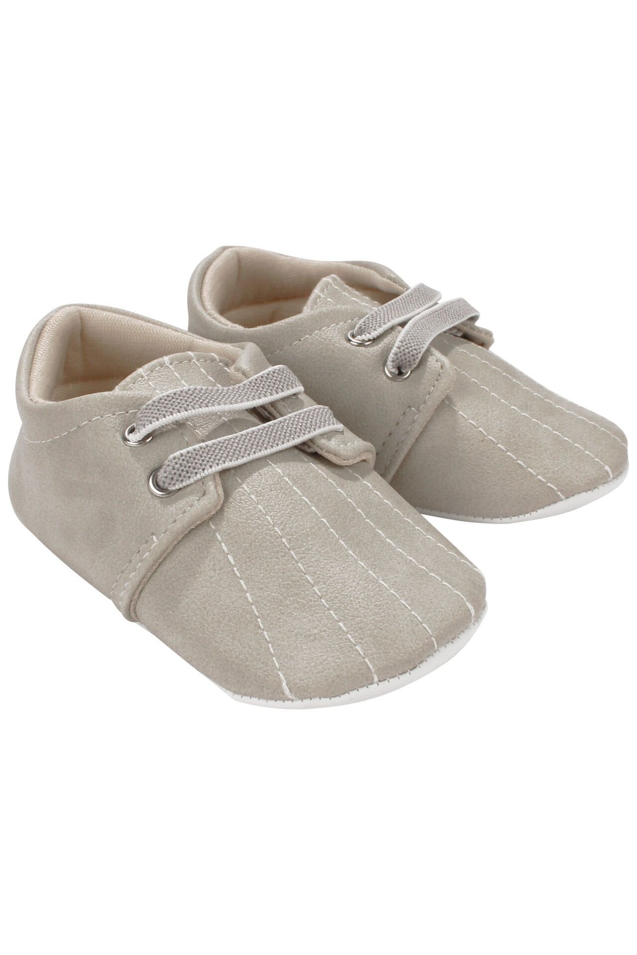 Erkek Bebek Bej Lastikli Bağcıklı Dikişli Ayakkabı