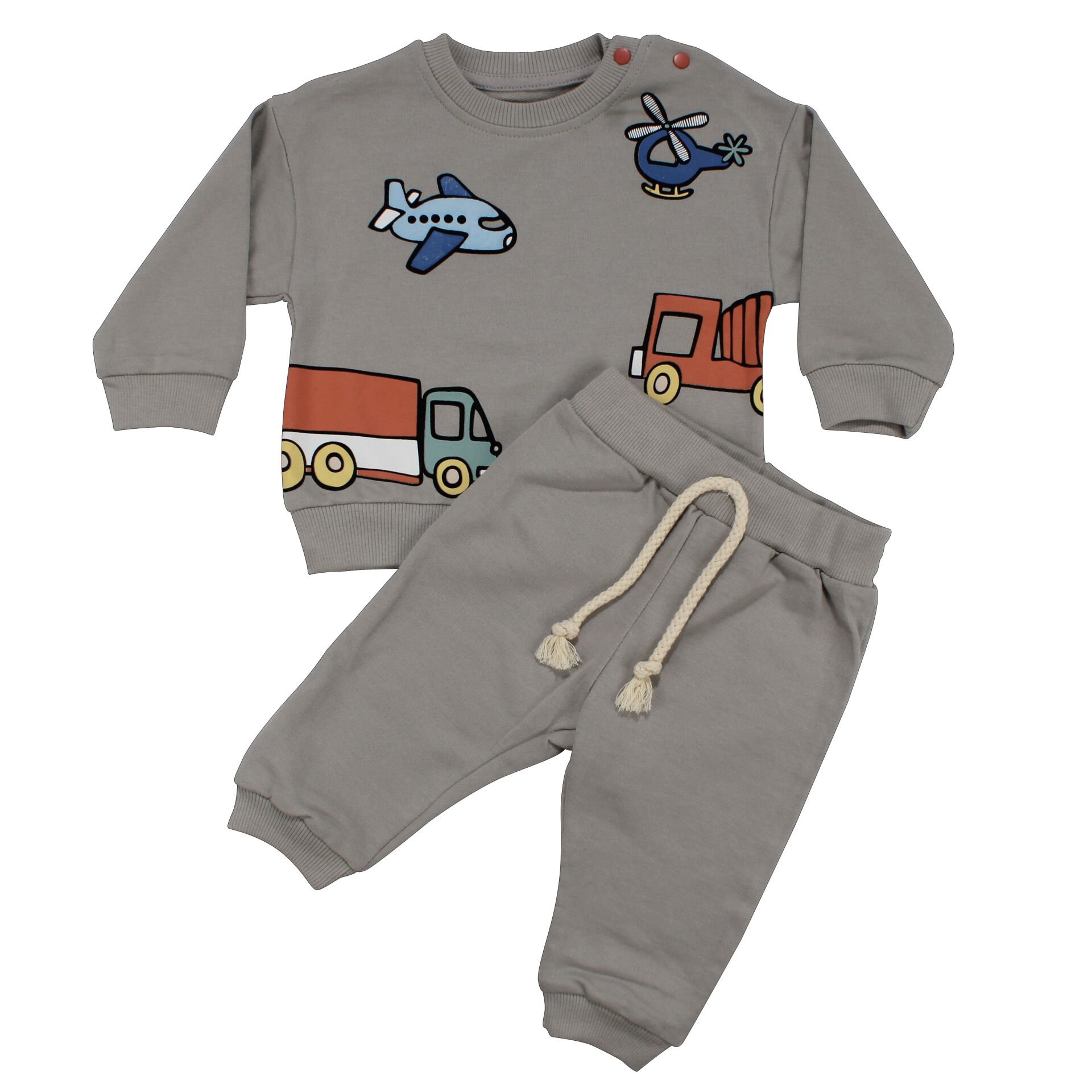 Erkek Bebek Bej Uçak Kamyon Baskılı 2'li Takım