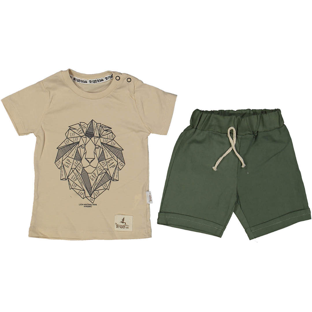 Erkek Bebek Bej Yeşil Aslan Baskılı Şortlu 2'li Takım