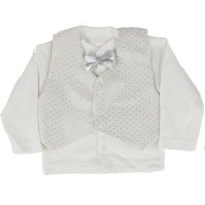 Erkek Bebek Beyaz Ekru Simli Papyonlu 5'li Mevlüt Takımı 0-3 Ay