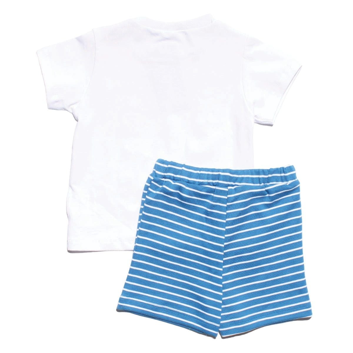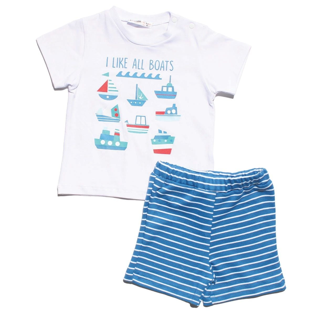 Erkek Bebek Beyaz Gemi Desenli Mavi Çizgili Şortlu 2'li Takım