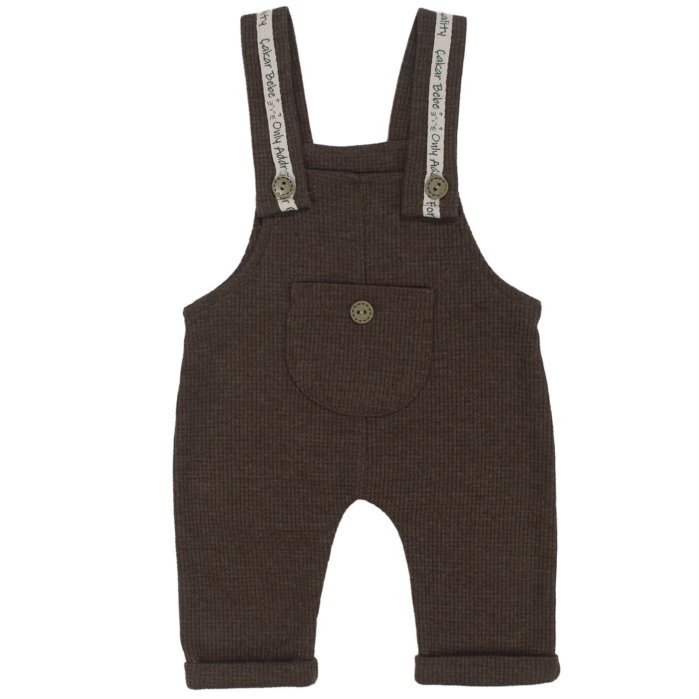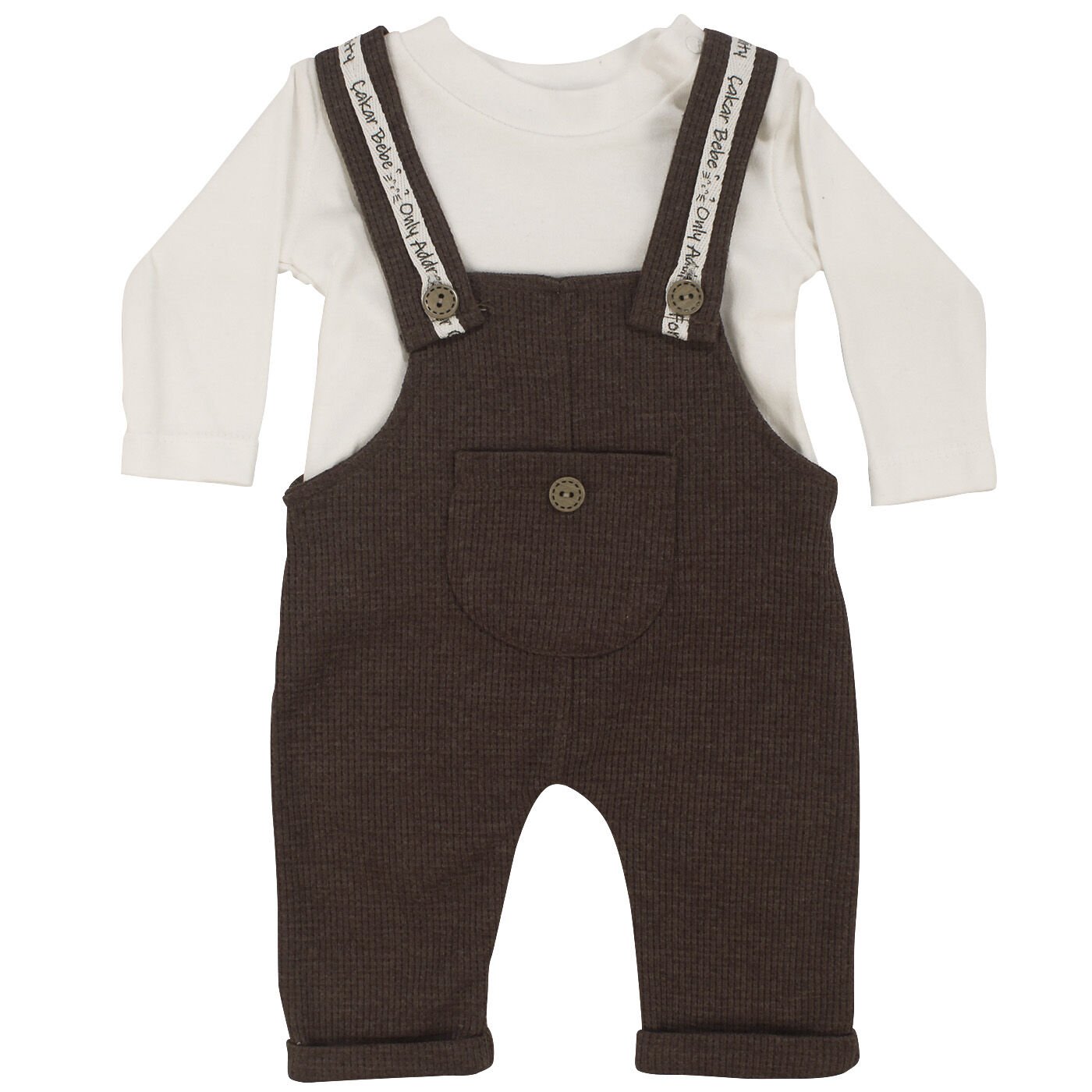 Erkek Bebek Beyaz Kahve Waffle Salopetli İkili Takım
