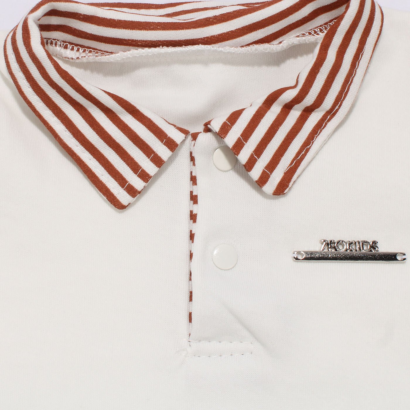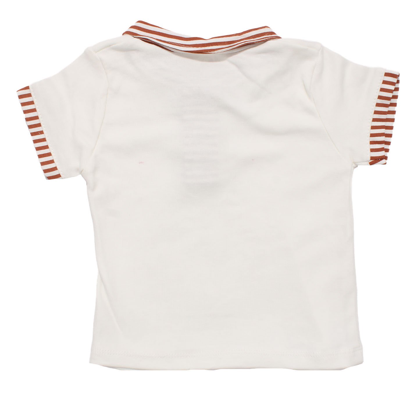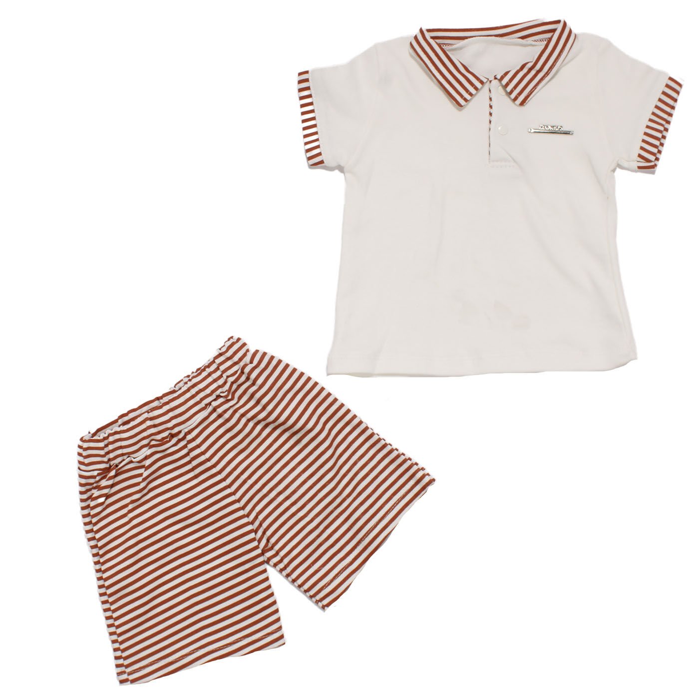 Erkek Bebek Beyaz Kiremit Çizgili Yakalı Şortlu 2'li Takım