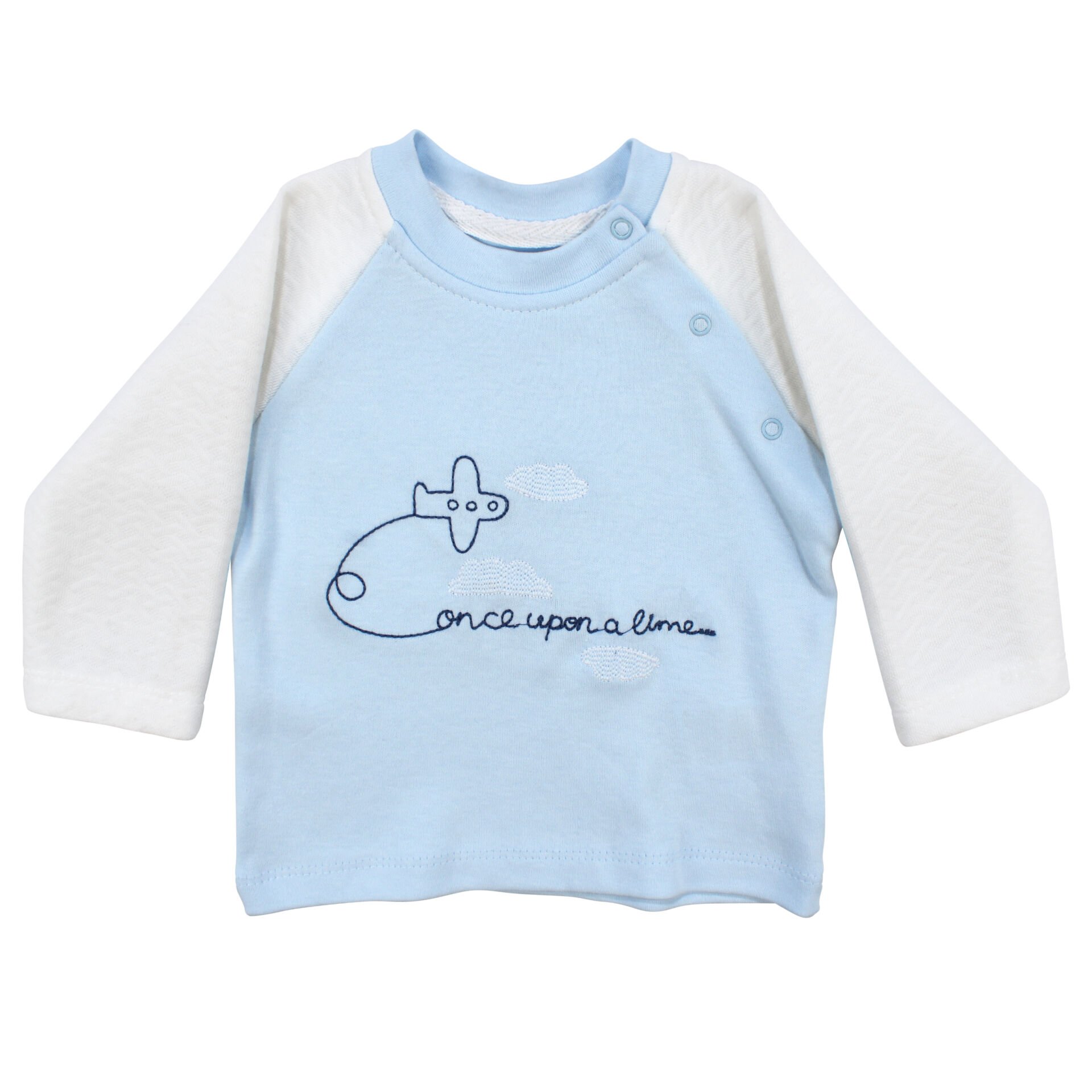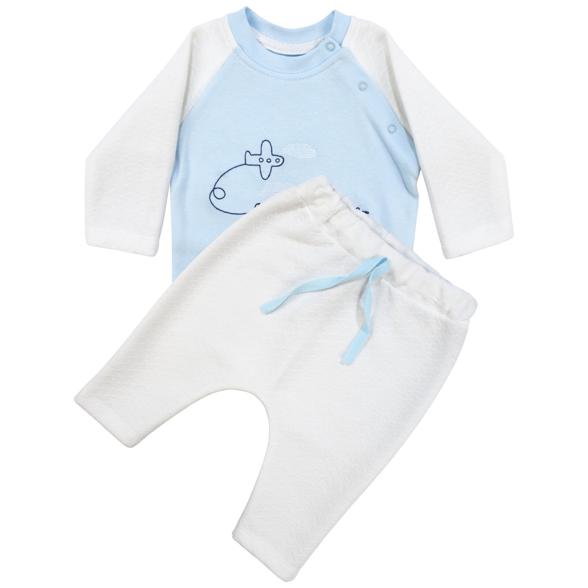 Erkek Bebek Beyaz Mavi Uçak Desenli 2'li Takım