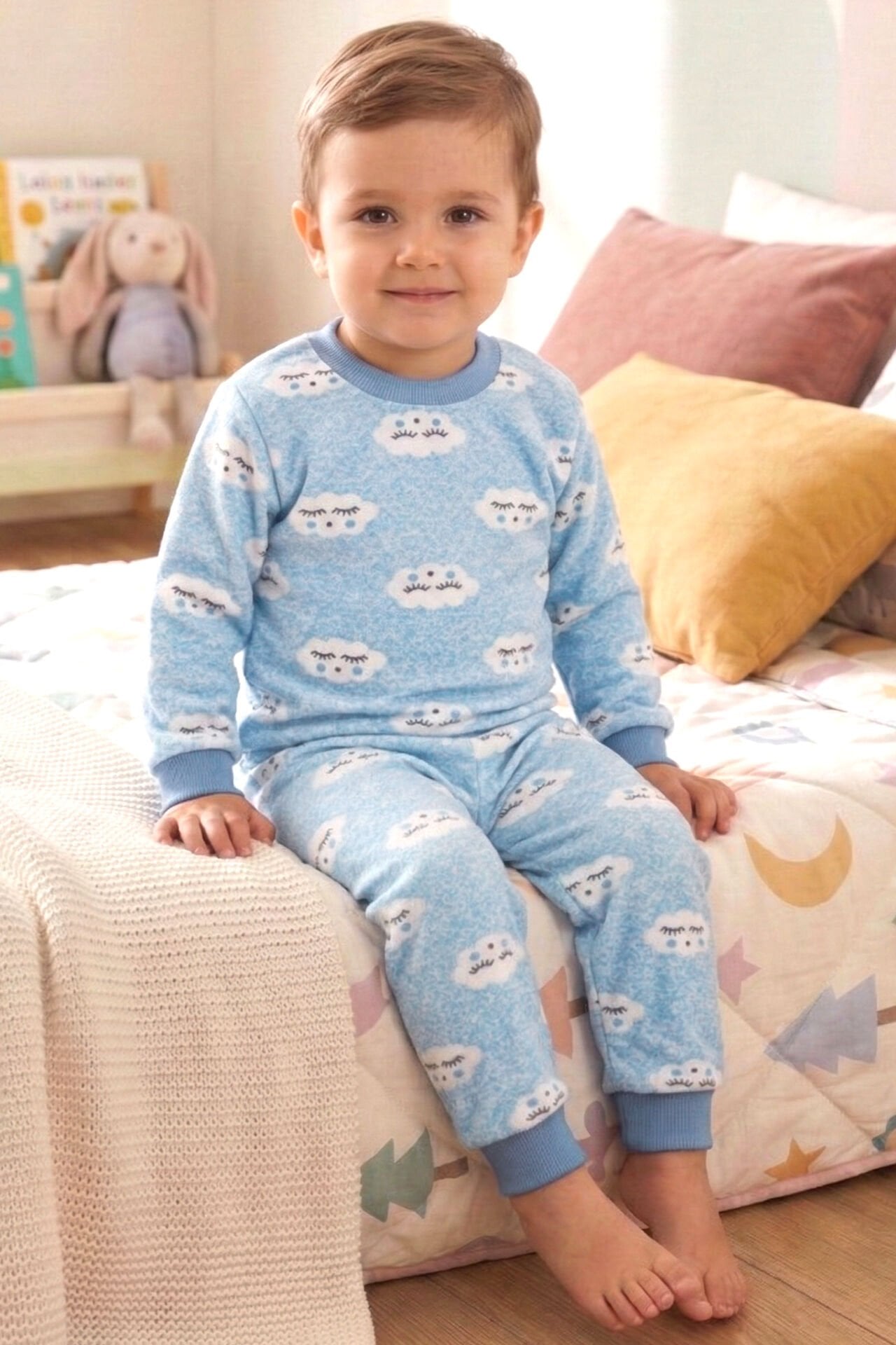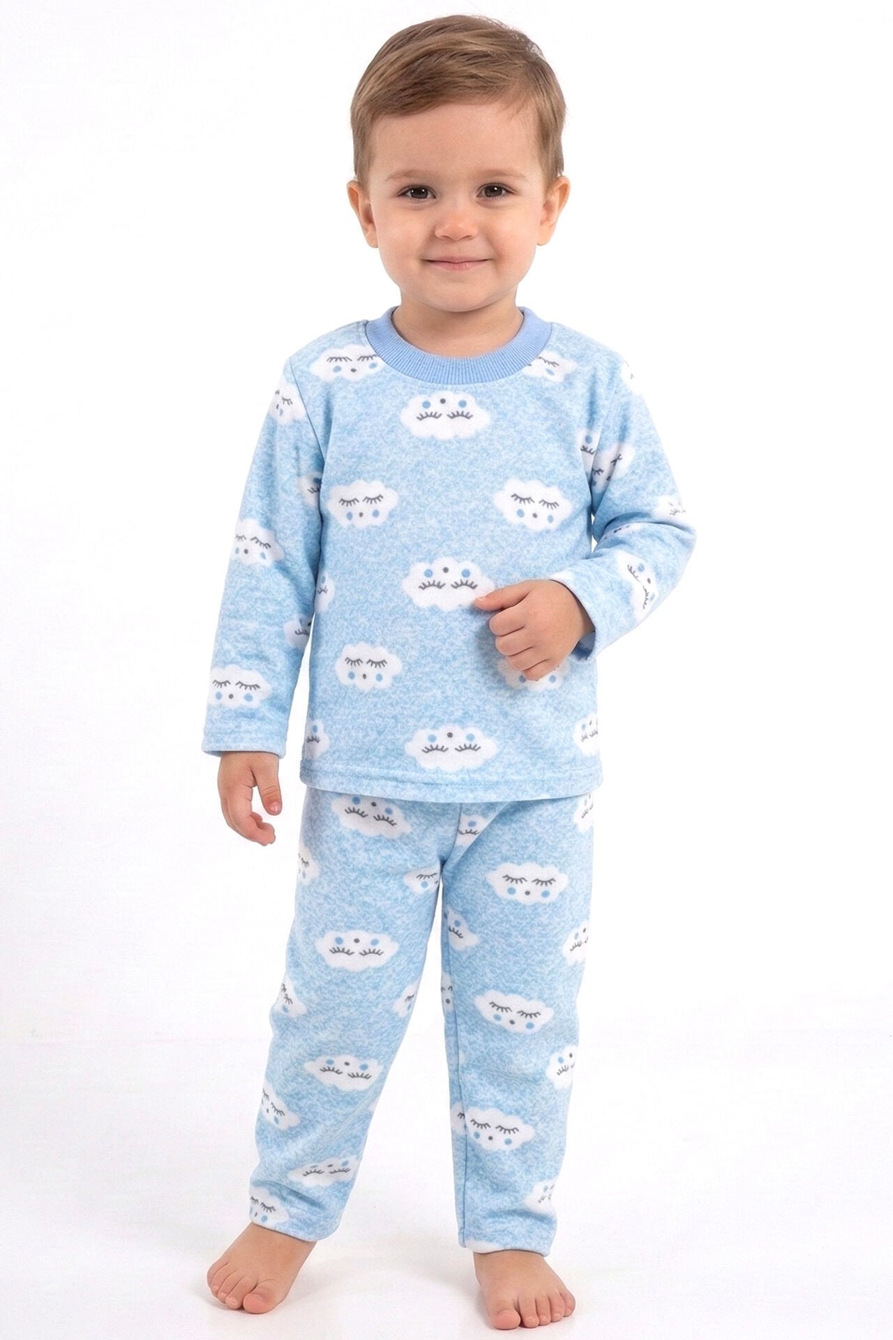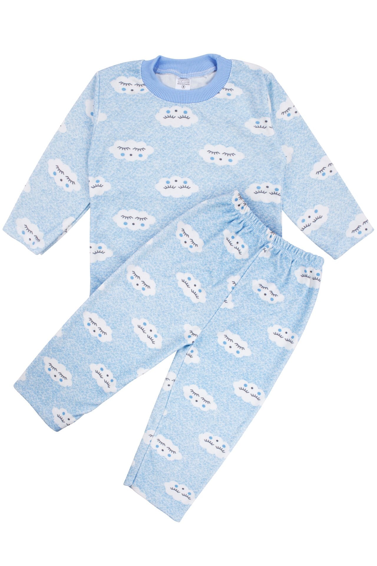 Erkek Bebek Bulut Desenli Alt Üst Mavi 2'li Pijama Takım