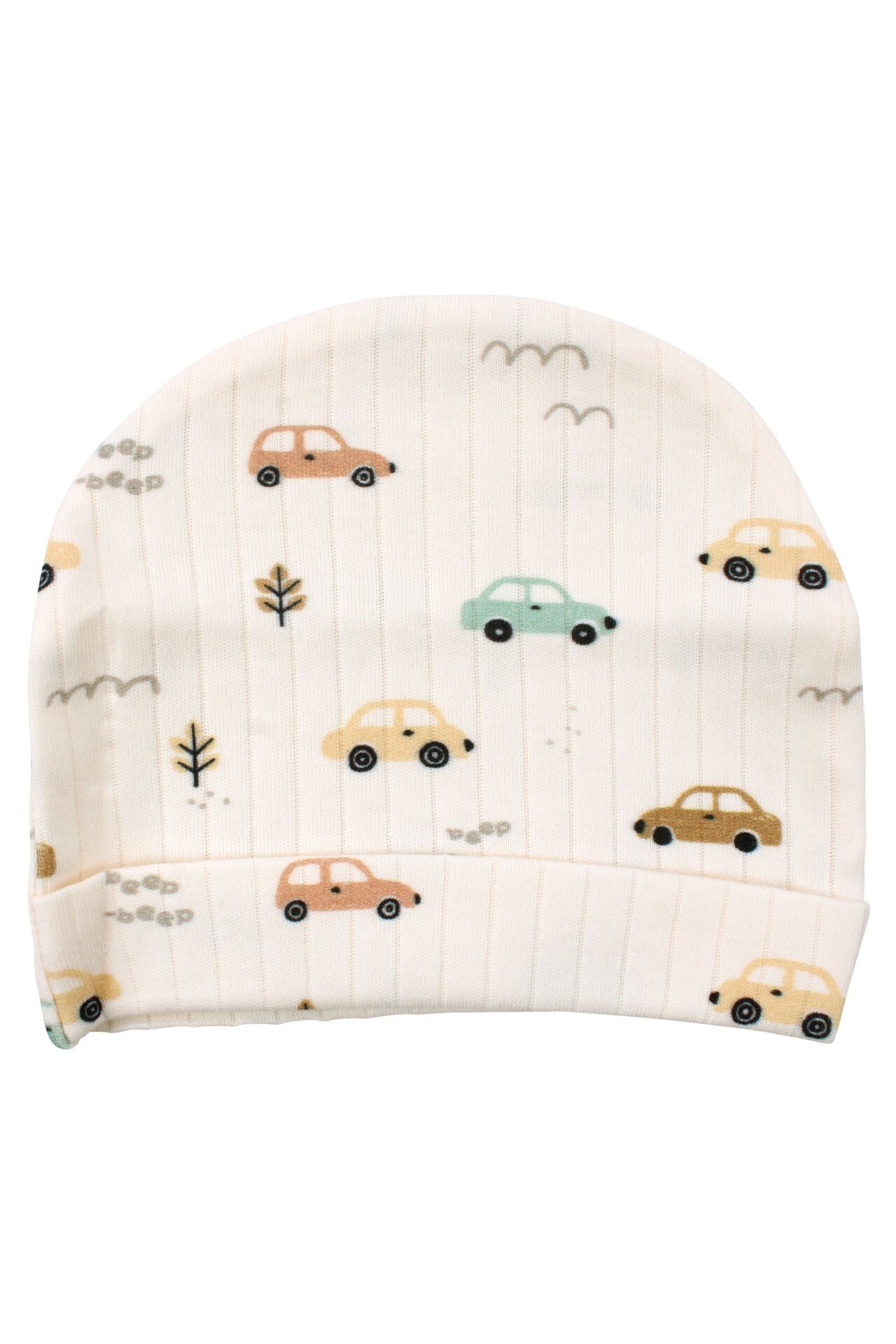 Erkek Bebek Ekru Araba Desenli Üçlü Takım (0-3 Ay)