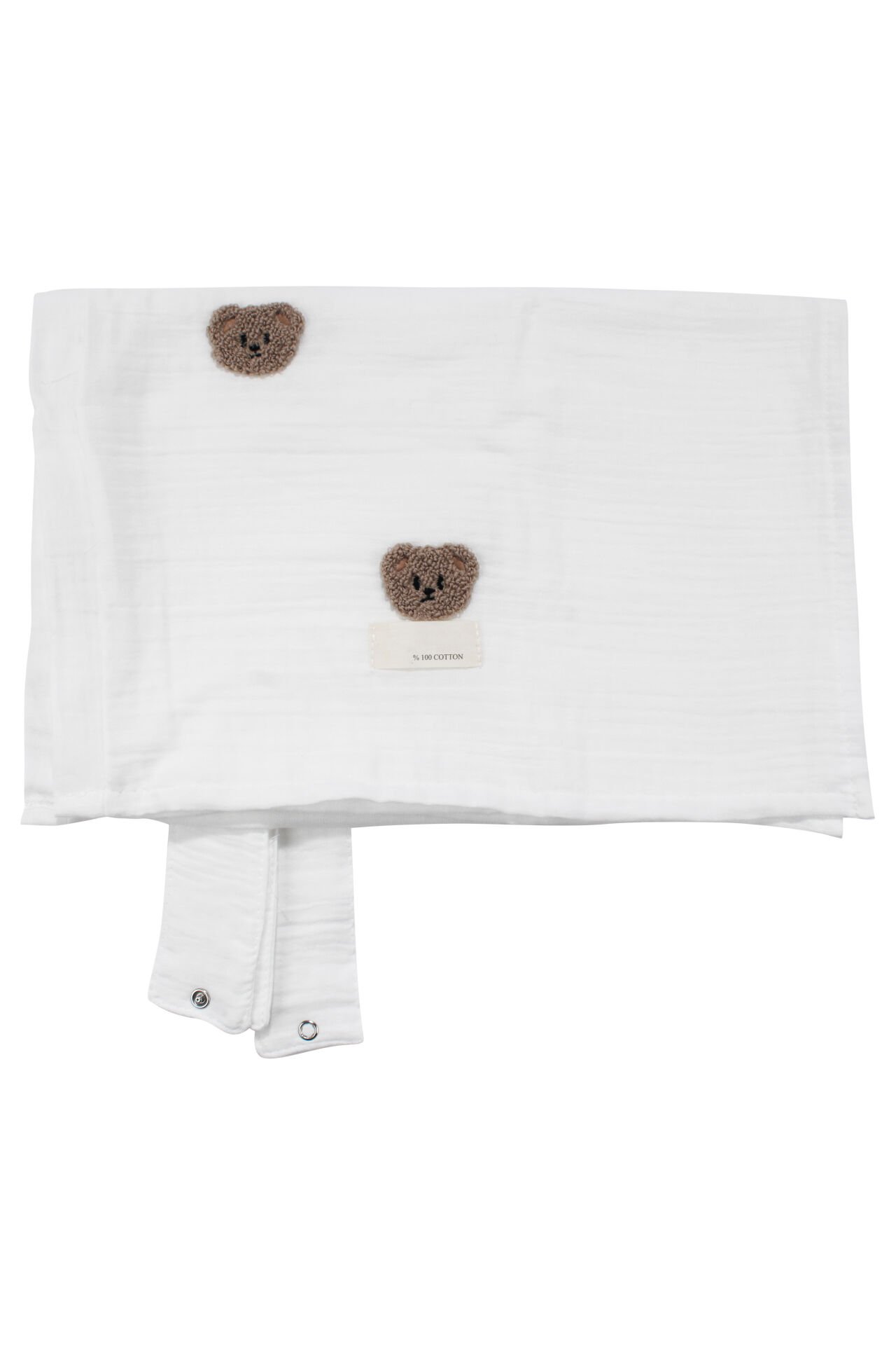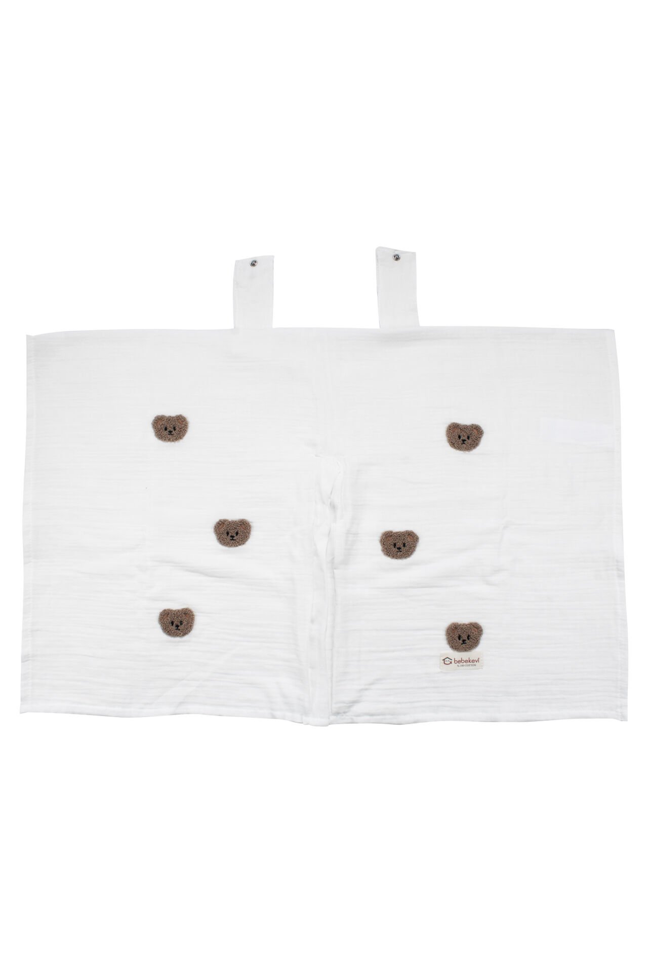 Erkek Bebek Ekru Kahve Ayıcık Nakışlı Müslin Puset Örtüsü