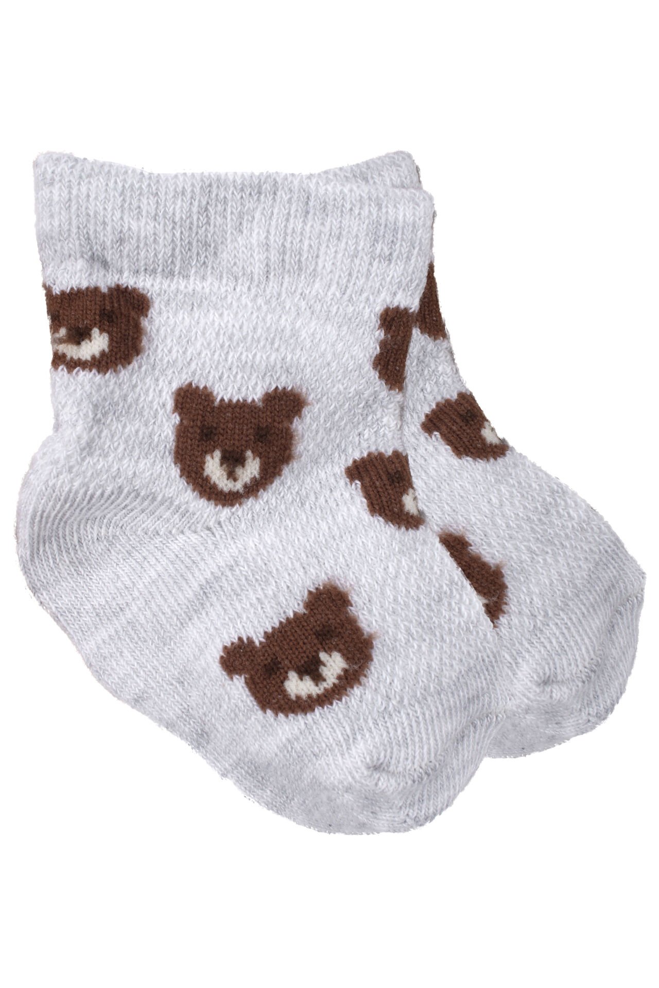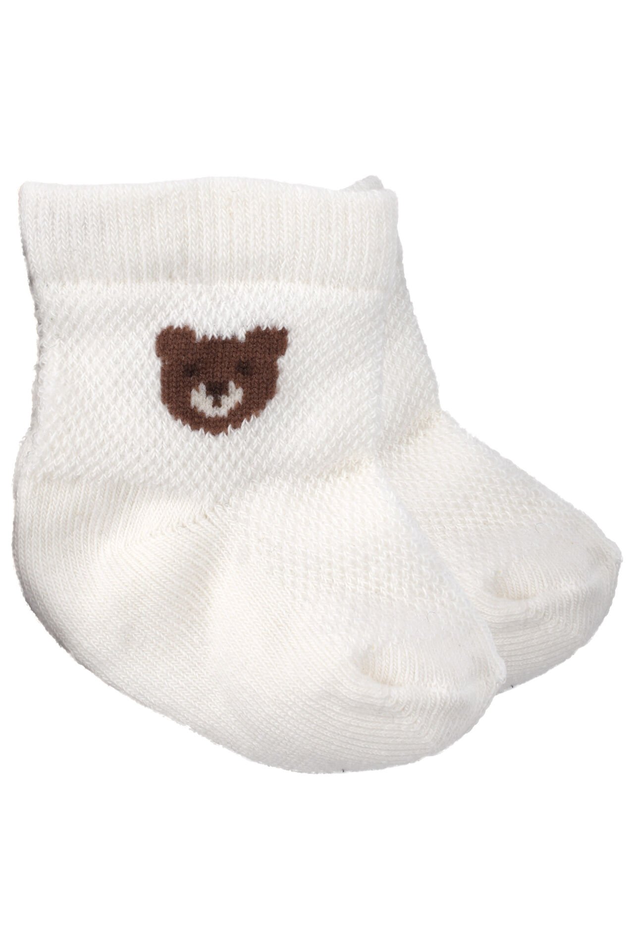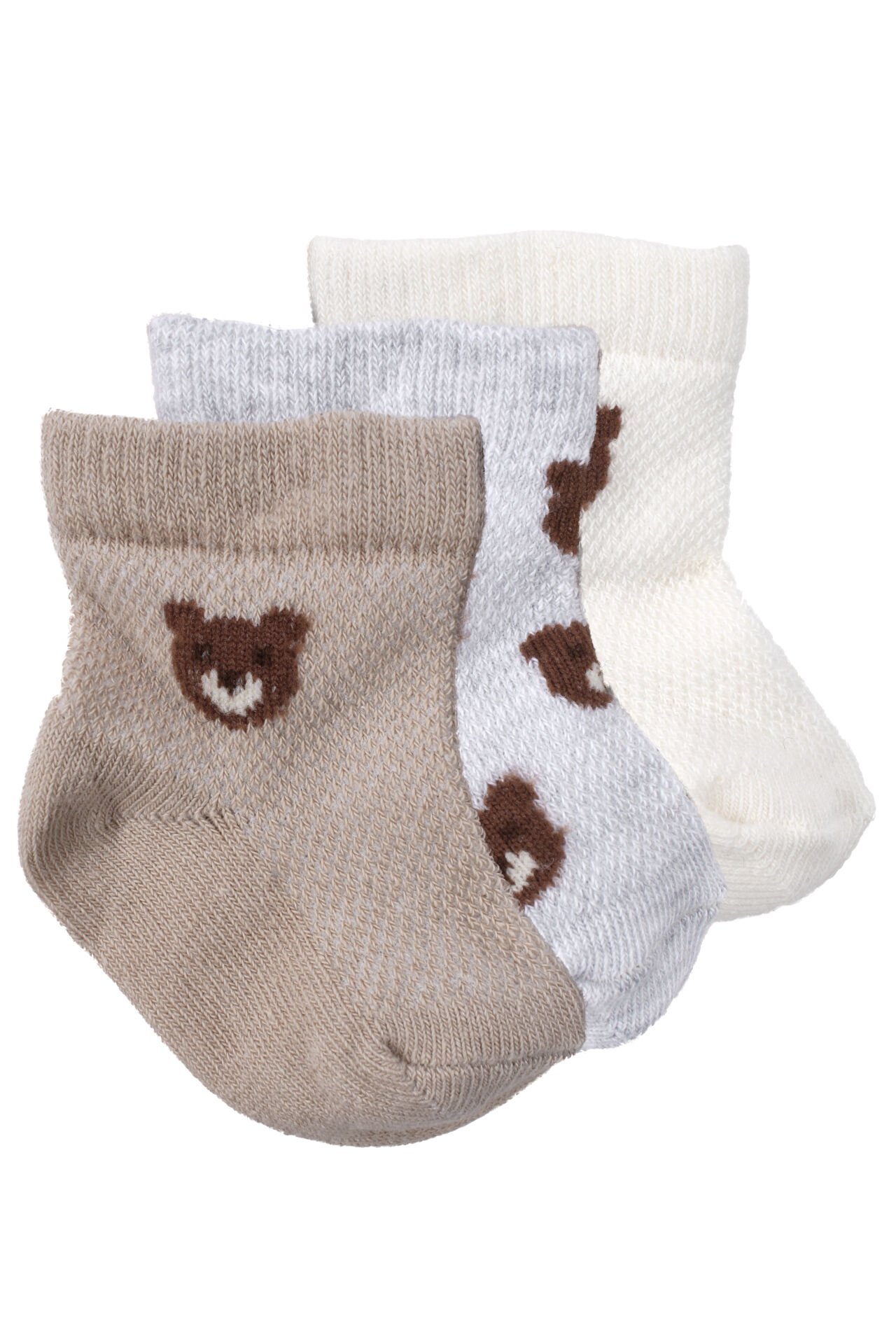 Erkek Bebek Ekru Kahve Beyaz Ayıcık Desenli 3'lü Çorap 0-6 Ay