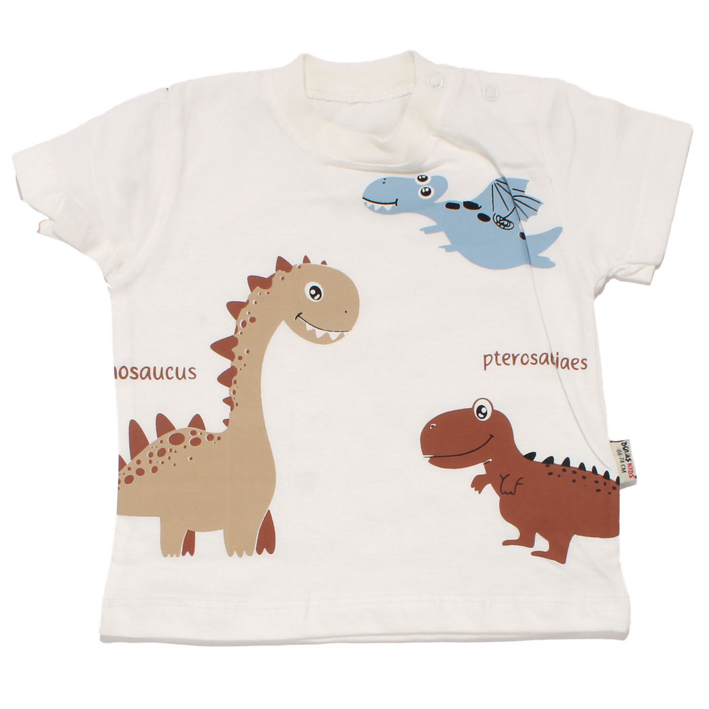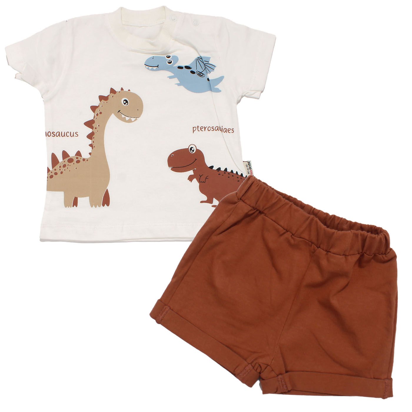 Erkek Bebek Ekru Kahve Dinazor Desenli Şortlu Tişörtlü 2'li Takım