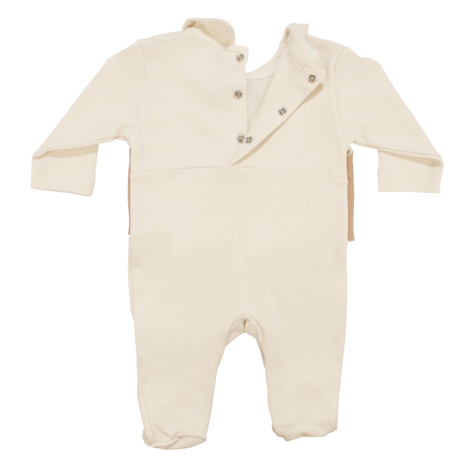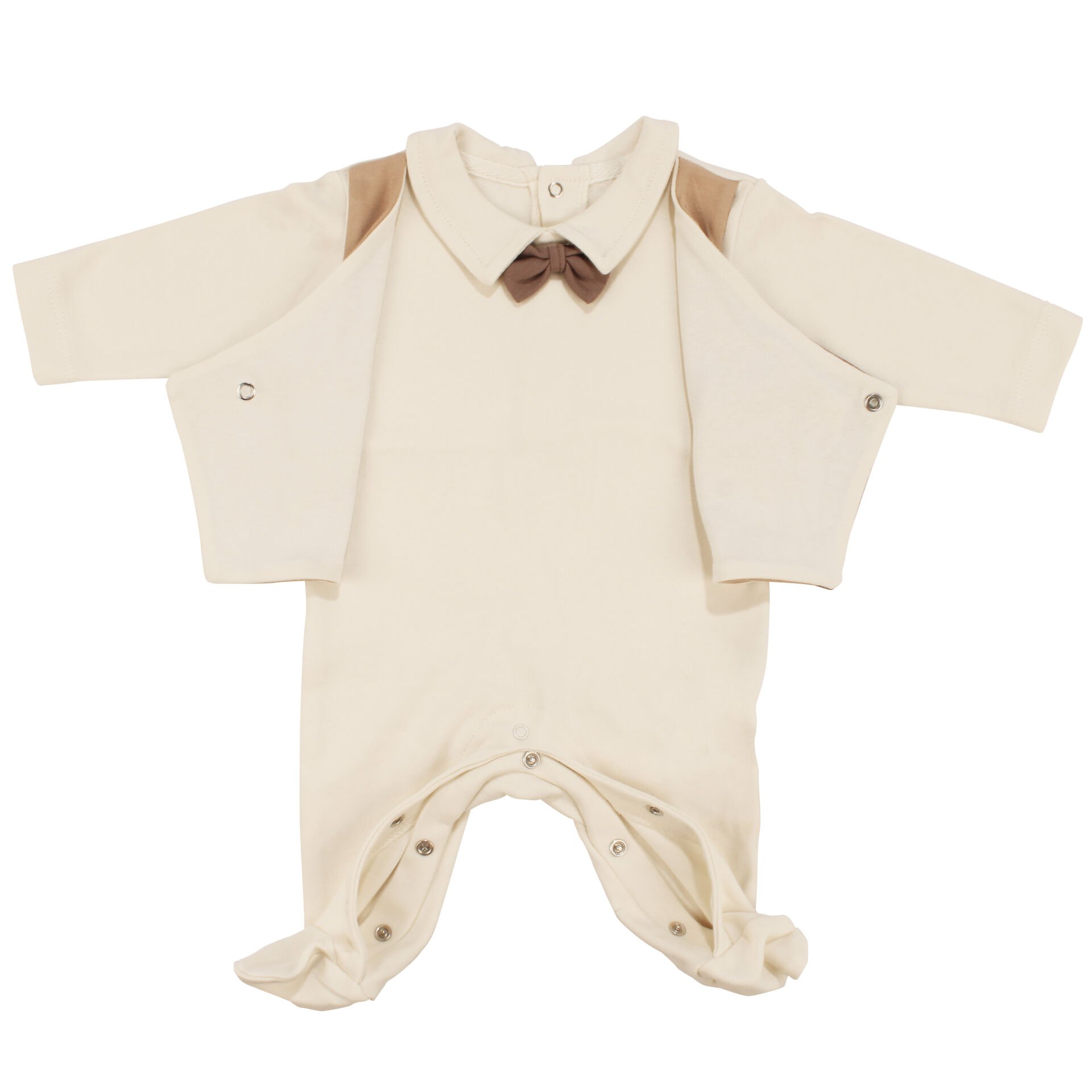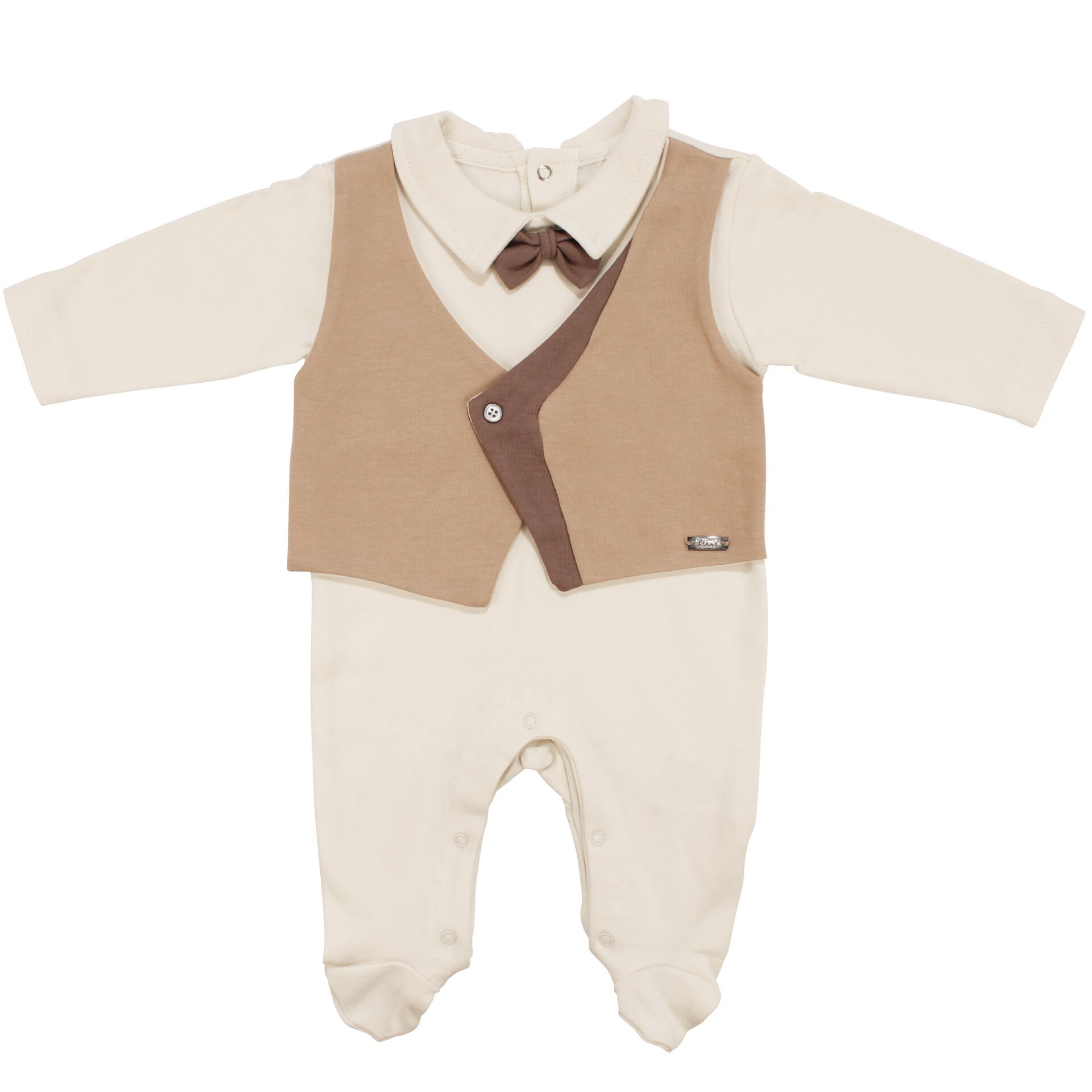 Erkek Bebek Ekru Kahve Papyonlu Kendinden Yelekli Patikli Lüks Tulum