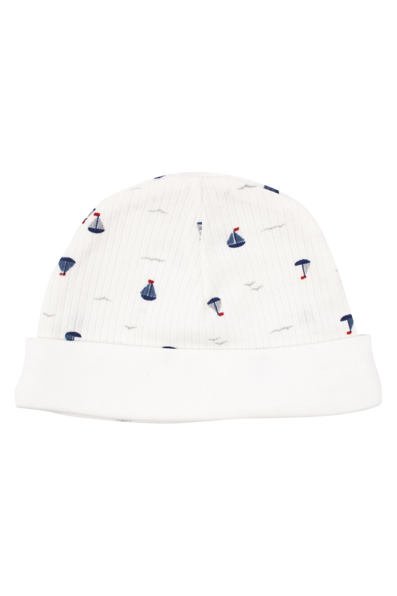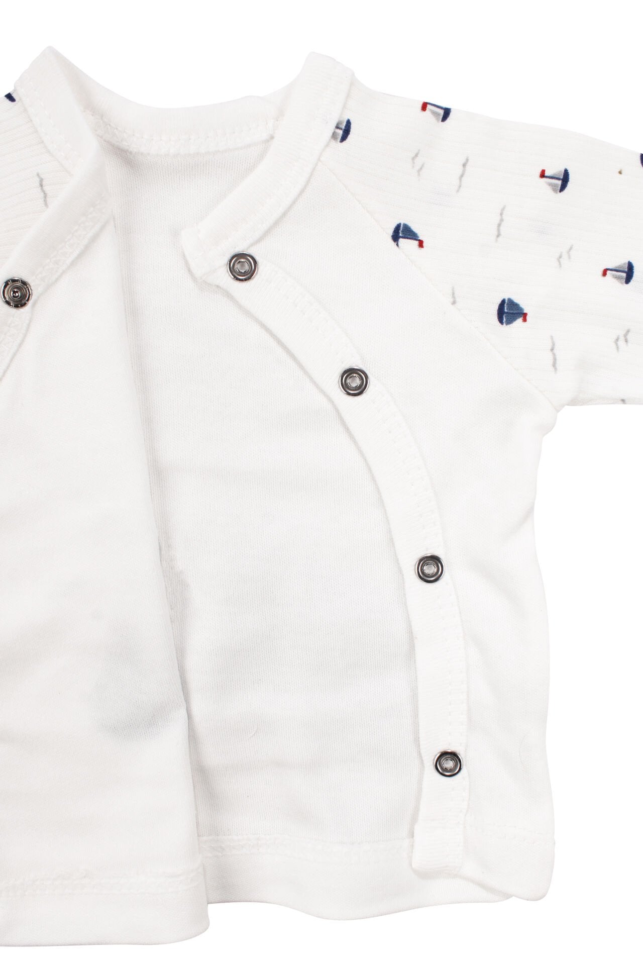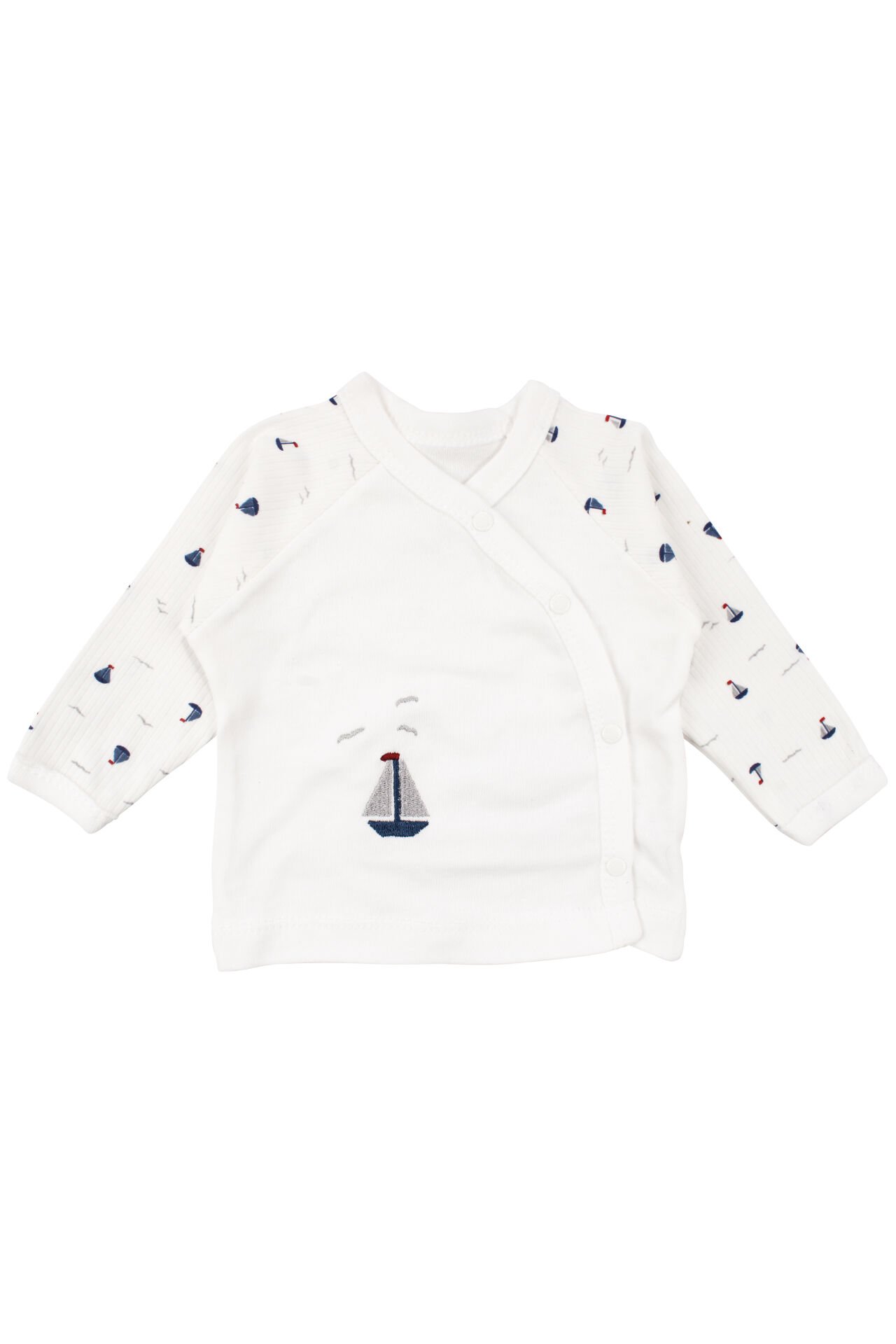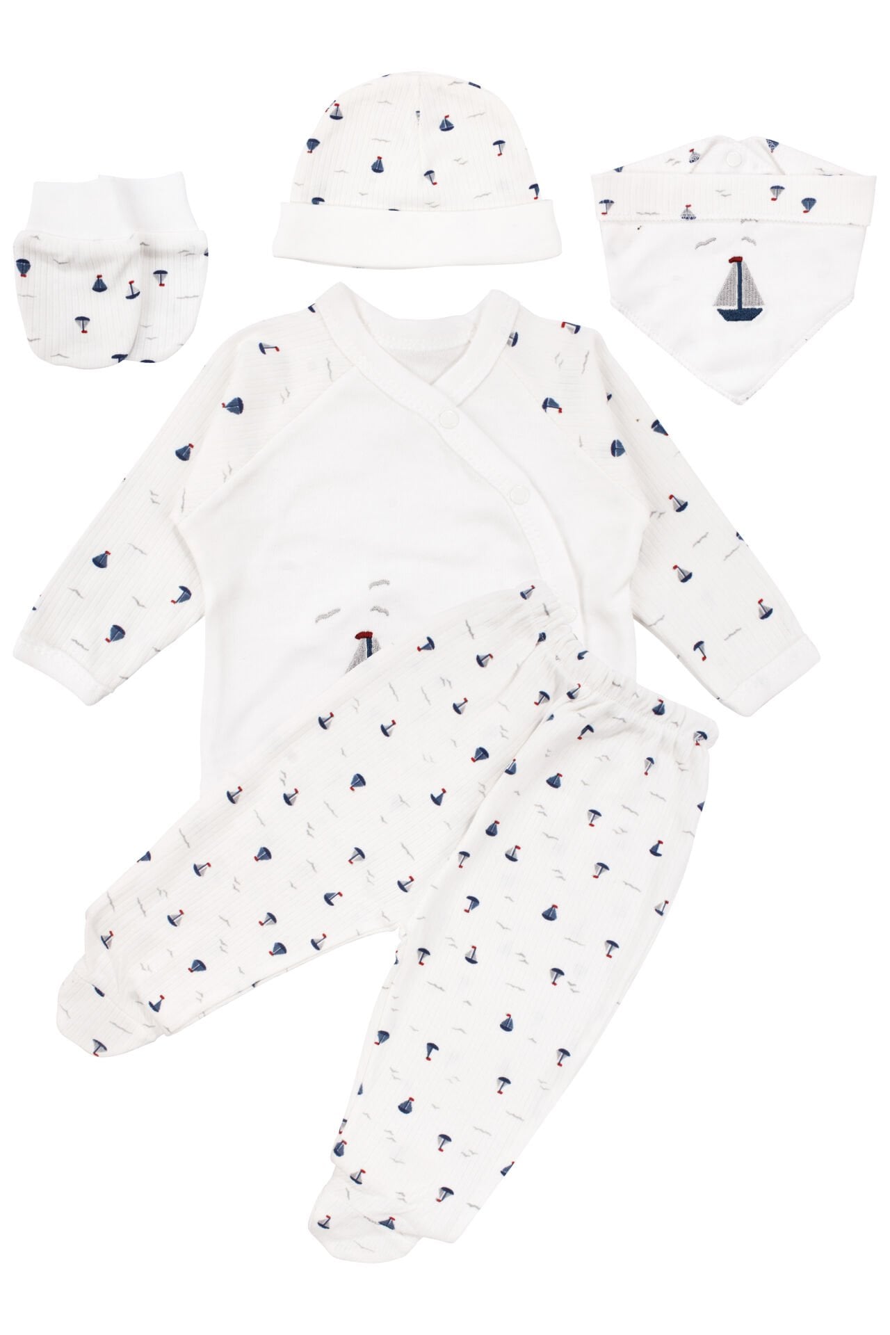 Erkek Bebek Ekru Lacivert Kayık Nakışlı 5 Parça Organik Hastane Çıkış Seti
