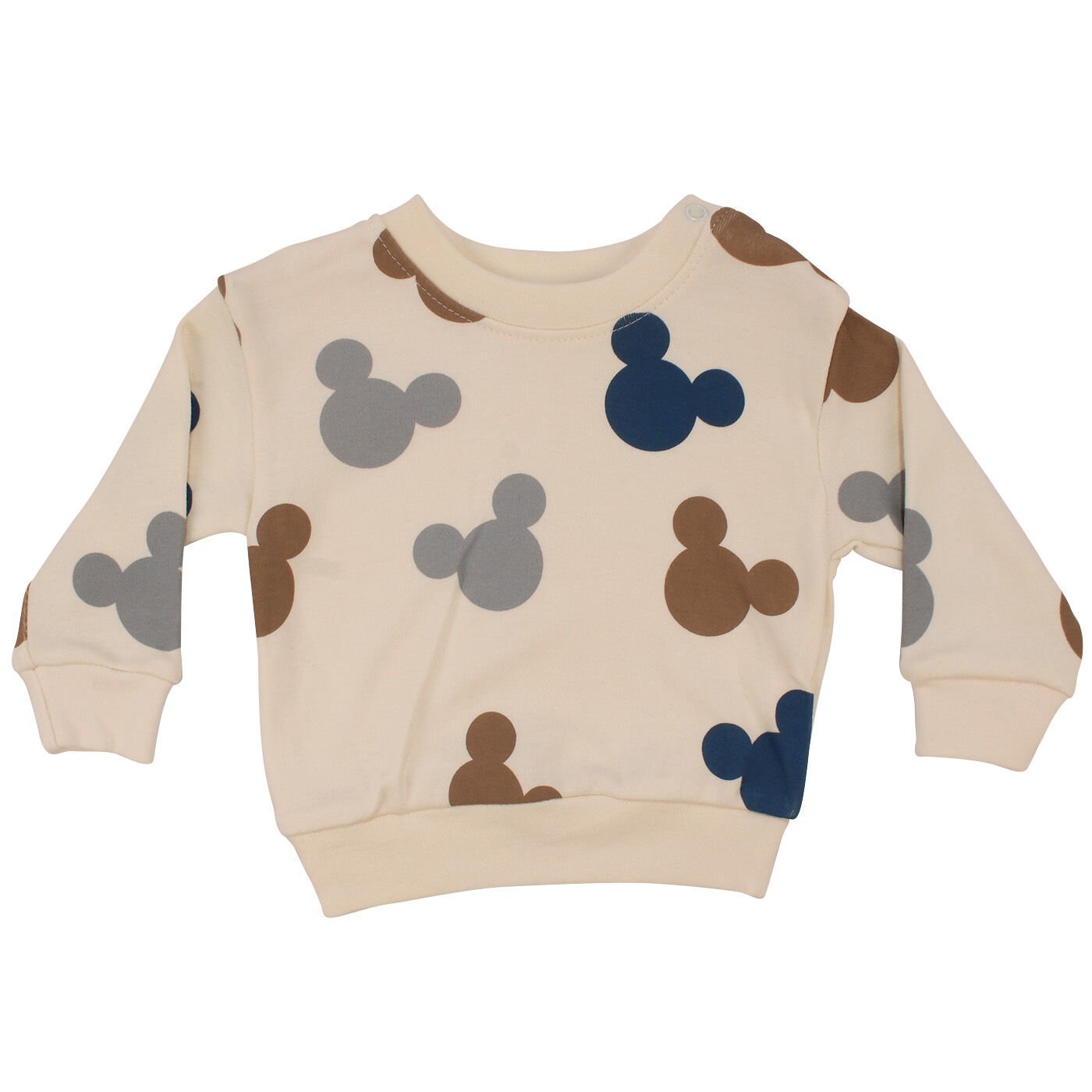 Erkek Bebek Ekru Mavi Fare Baskılı İkili Takım