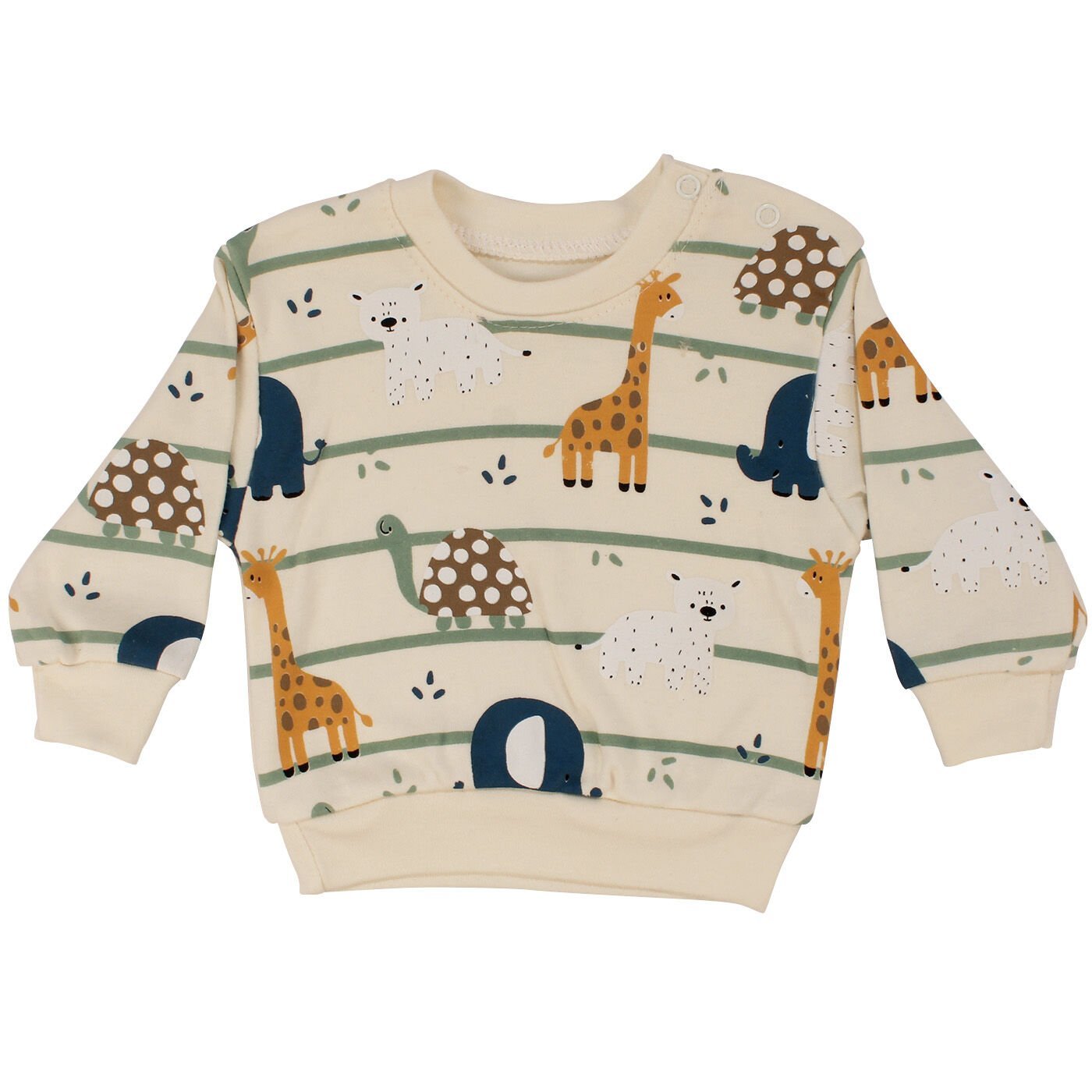Miniklerin hem rahat hem şık olmasını sağlayan Erkek Bebek Ekru Mavi Orman Hayvanları Baskılı İkili Takım, günlük kullanım için ideal bir tercihtir. Yumuşak ve esnek kumaşı, bebeğinizin hareket özgürlüğünü kısıtlamadan maksimum konfor sunar.