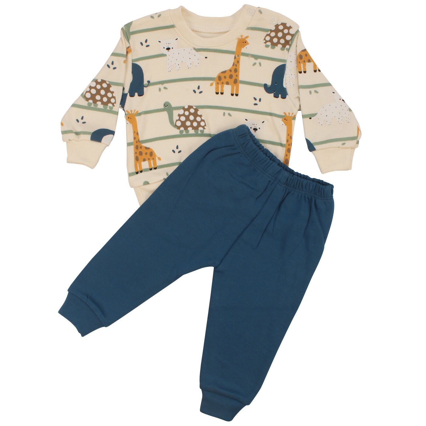 Erkek Bebek Ekru Mavi Orman Hayvanları Baskılı İkili Takım