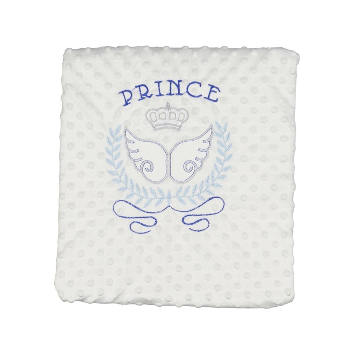 Erkek Bebek Ekru Mavi Prince Nakışlı Nohut Battaniye 80x90