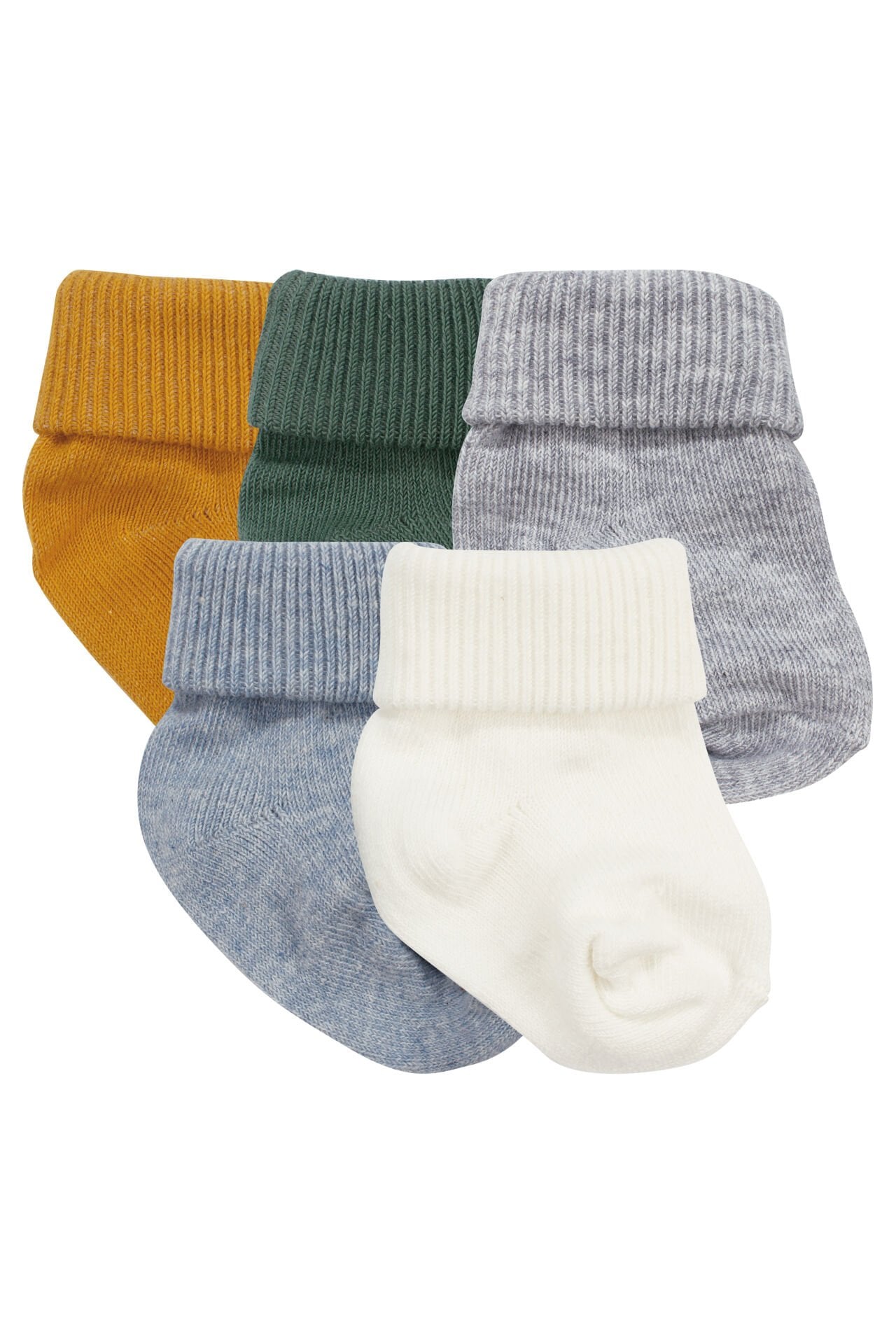 Erkek Bebek Ekru Mavi Sarı Gri Yeşil 5'li Çorap Set 0-6 Ay