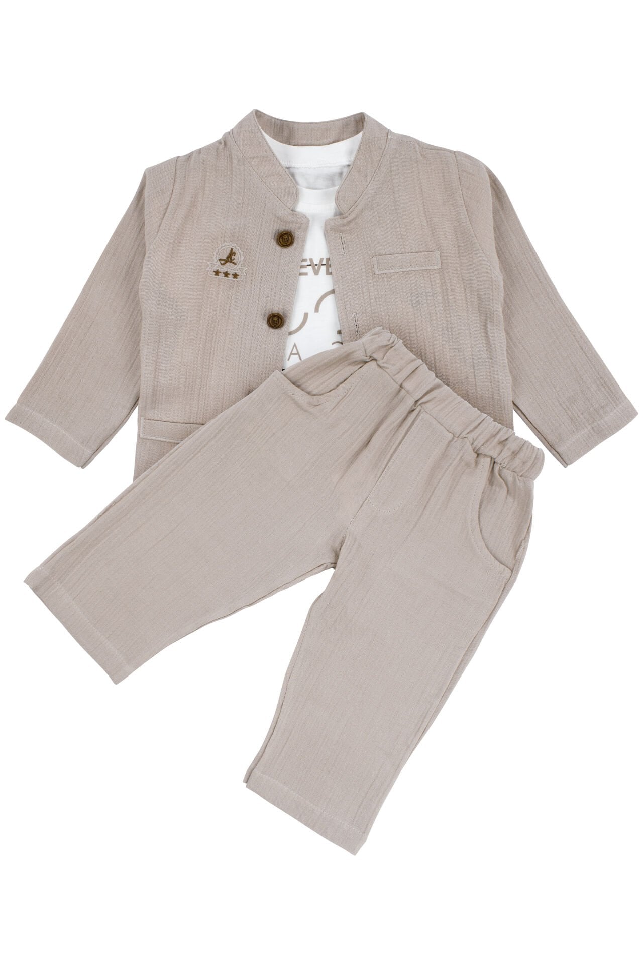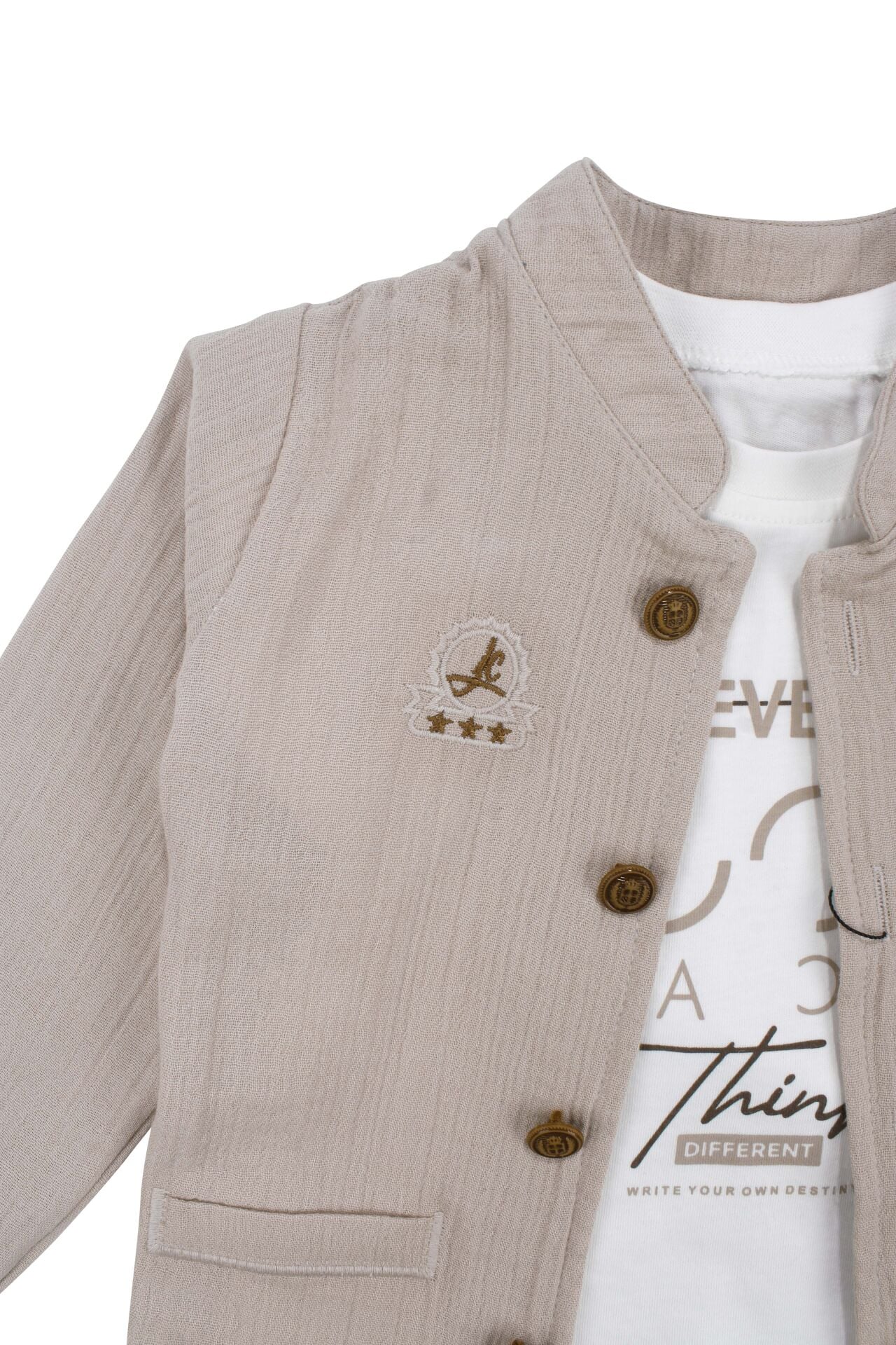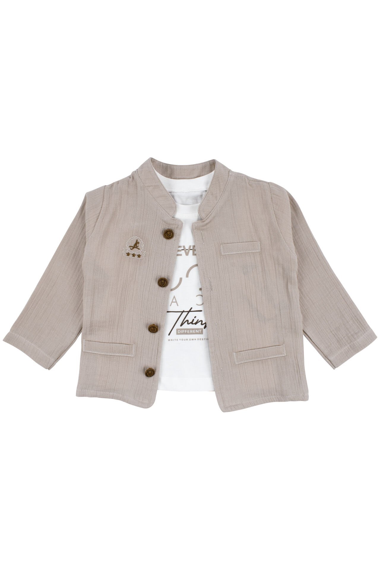Erkek Bebek Ekru Never Look Back Yazılı Yeşil Bej Ceketli 3'lü Takım