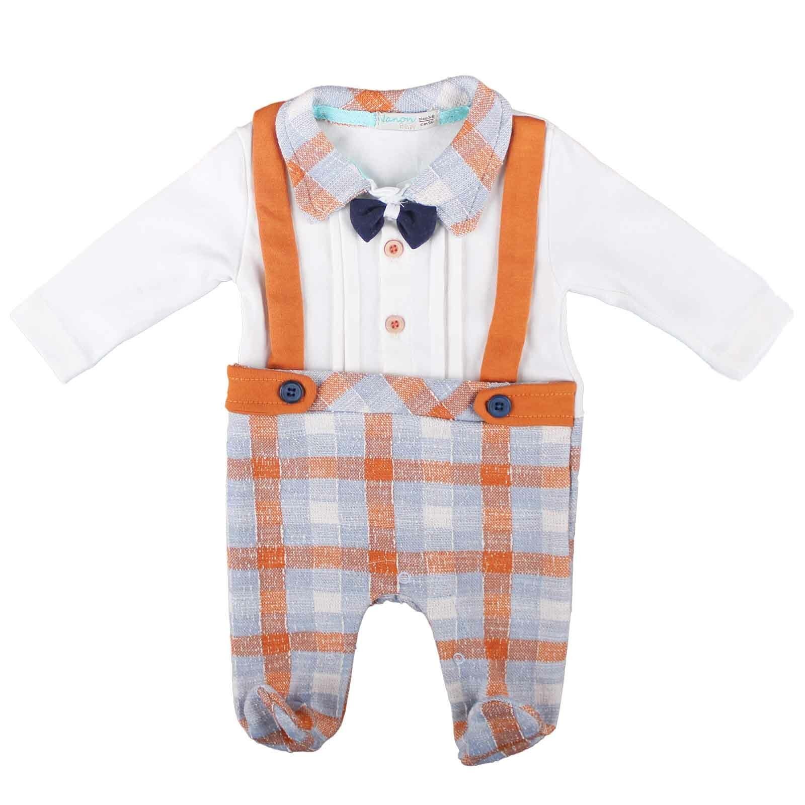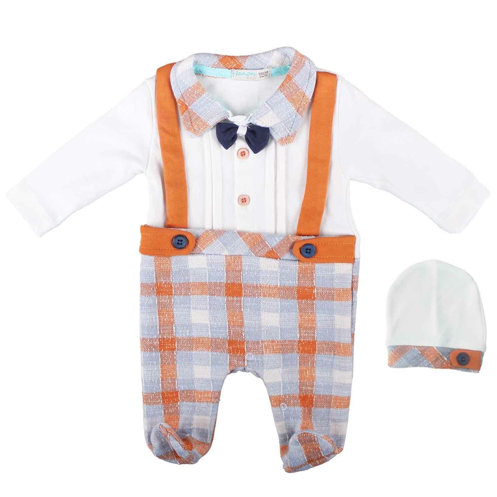 Erkek Bebek Ekru Turuncu Ekoseli Papyonlu Patikli Tulum