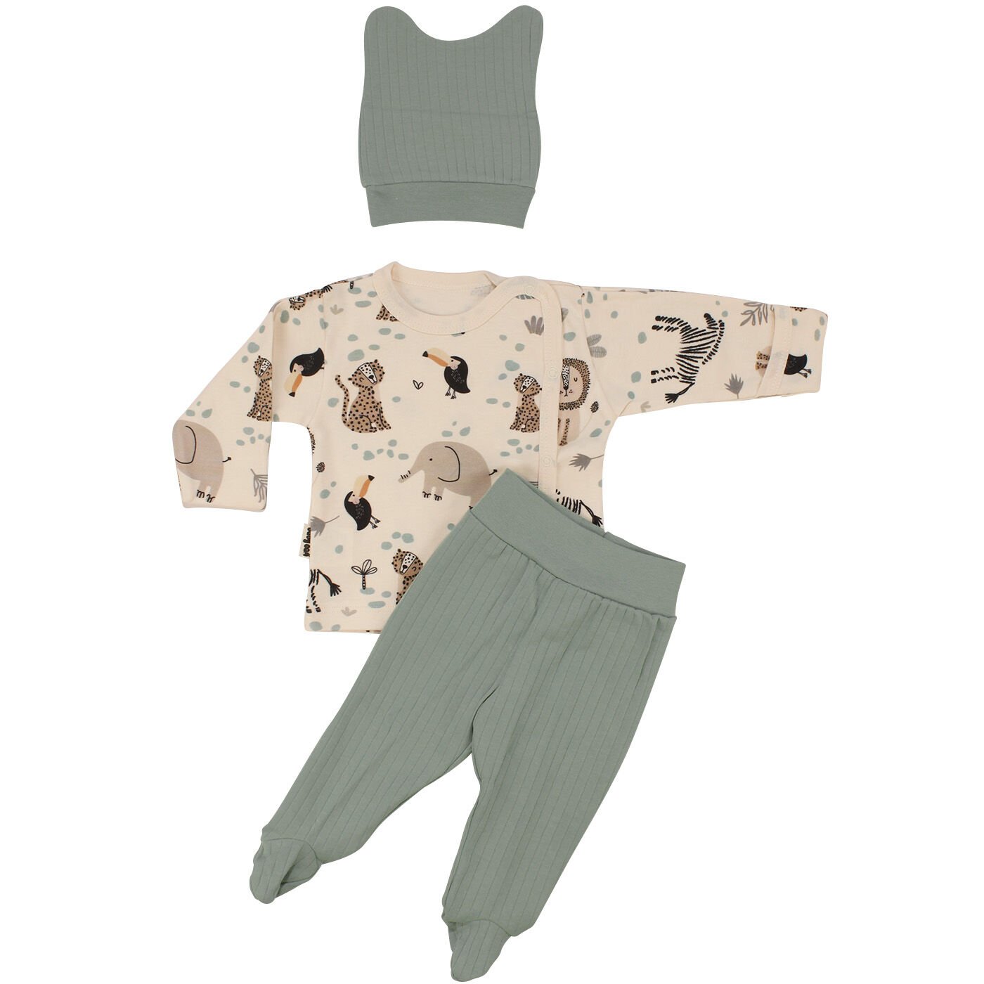 Erkek Bebek Ekru Yeşil Fil Safari Hayvanlı Pijama Takımı 0-3 Ay