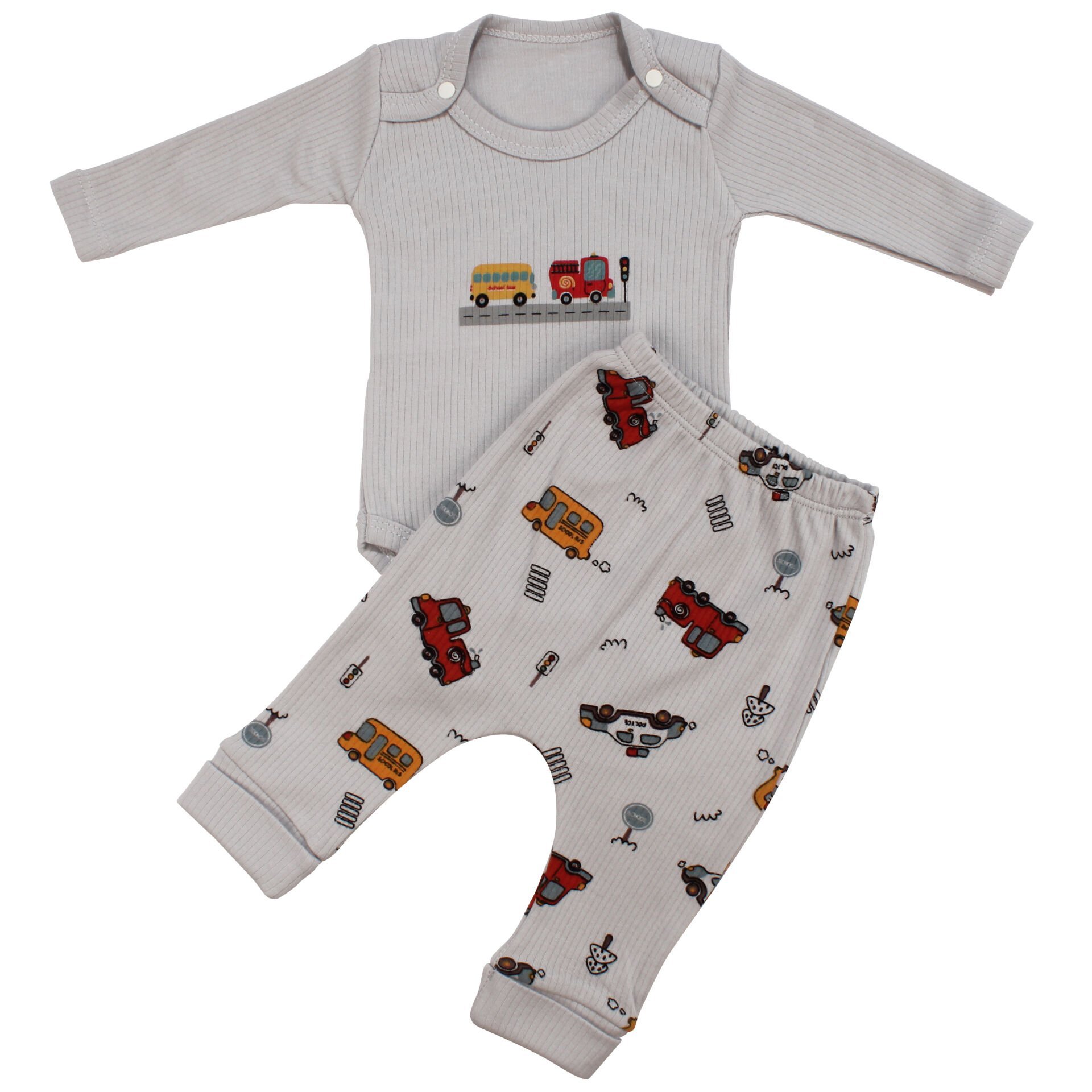 Erkek Bebek Gri Araba Desenli Zıbınlı 2'li Takım