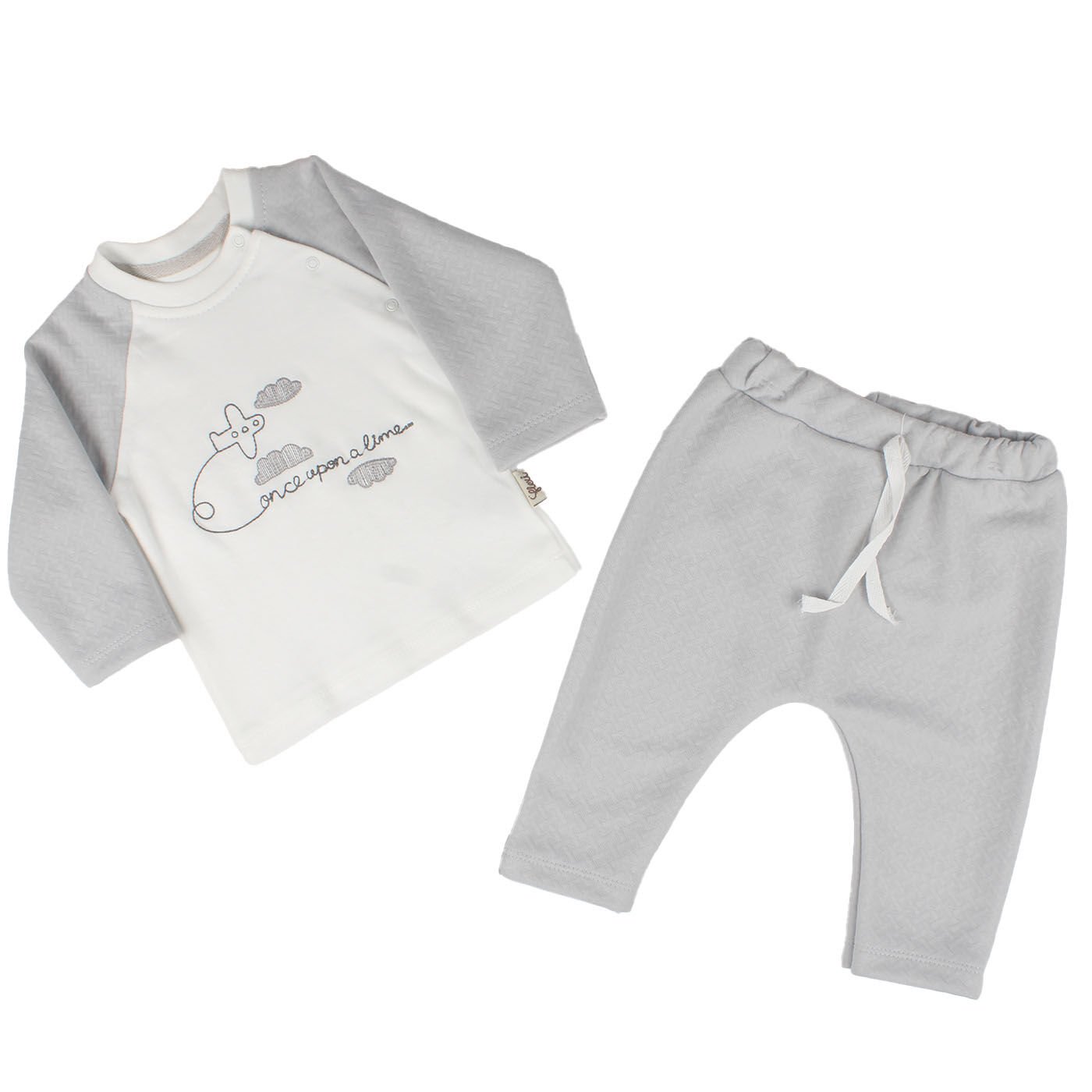 Erkek Bebek Gri Beyaz Uçak Desenli 2'li Takım
