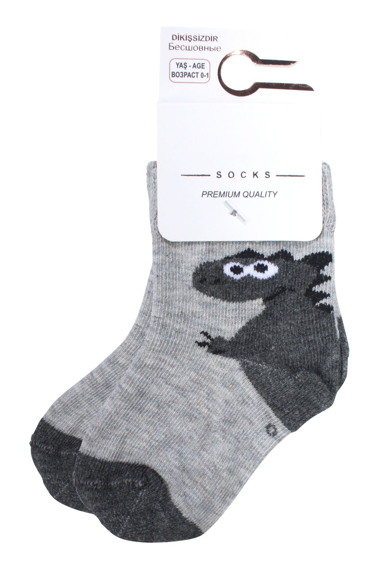 Erkek Bebek Gri Dino Desenli Çorap 0-12 Ay