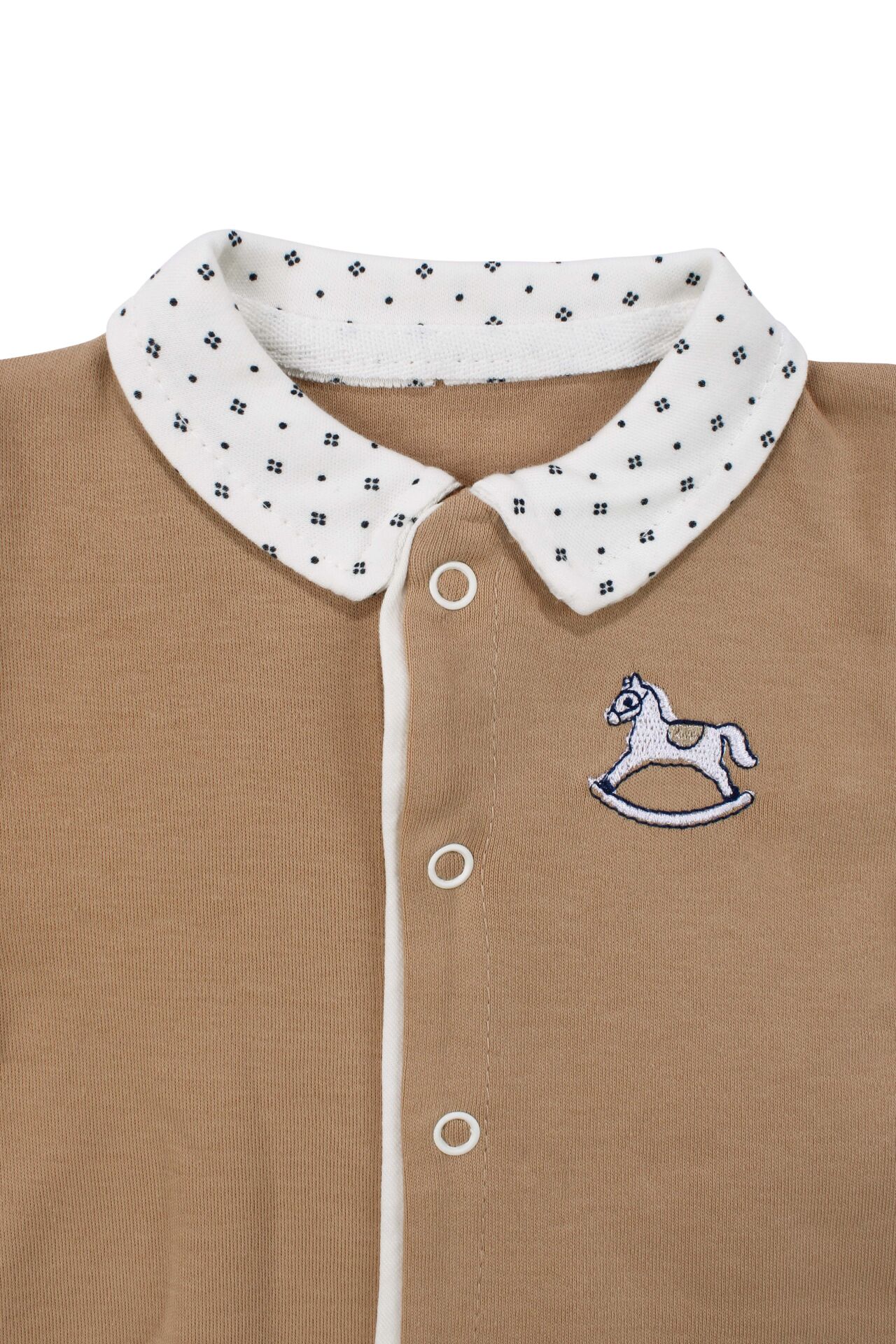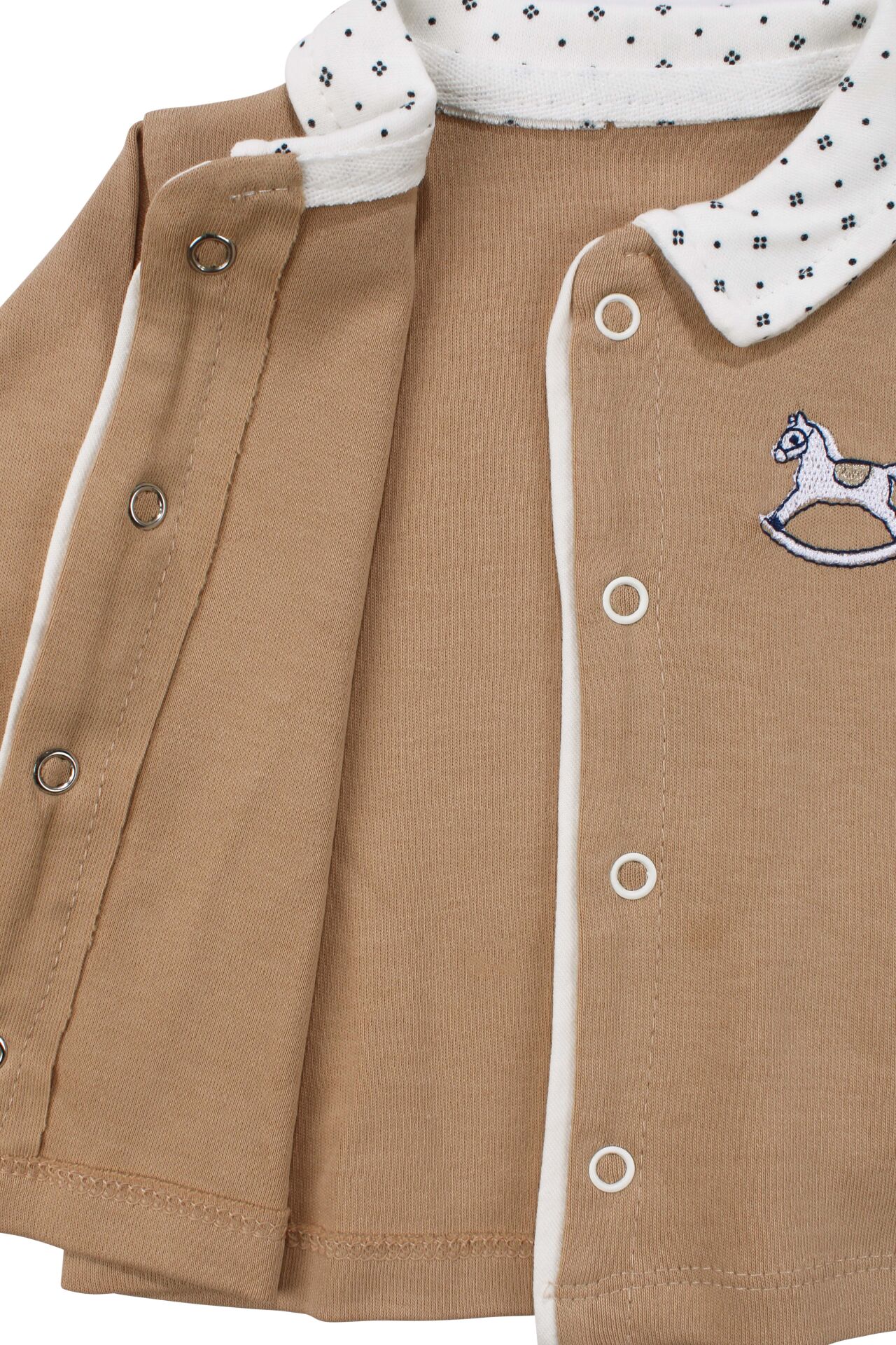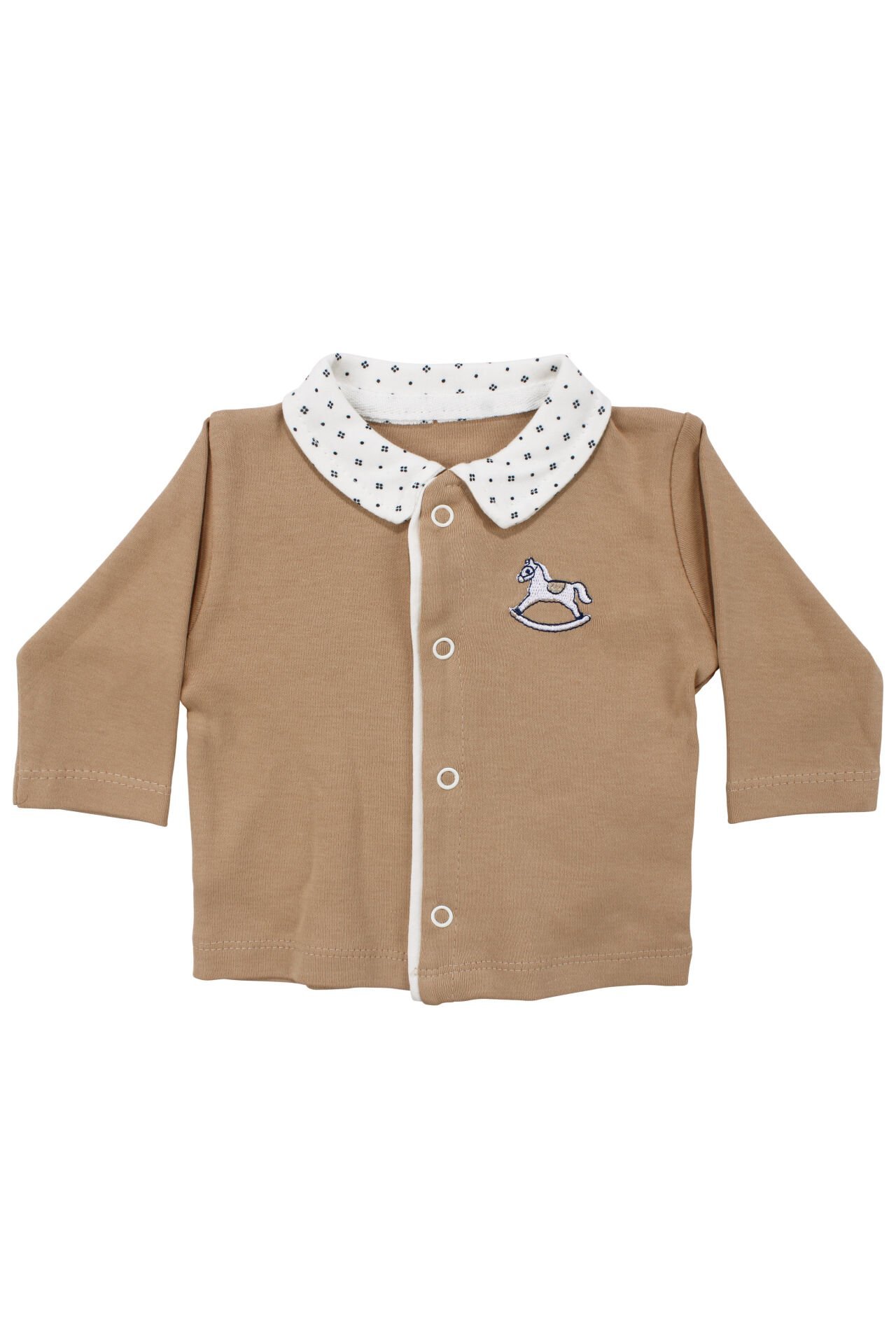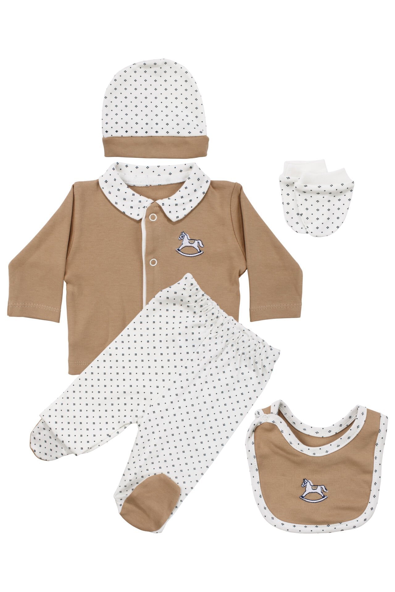 Erkek Bebek Kahve Ekru At Nakışlı 5 Parça Hastane Çıkış Seti