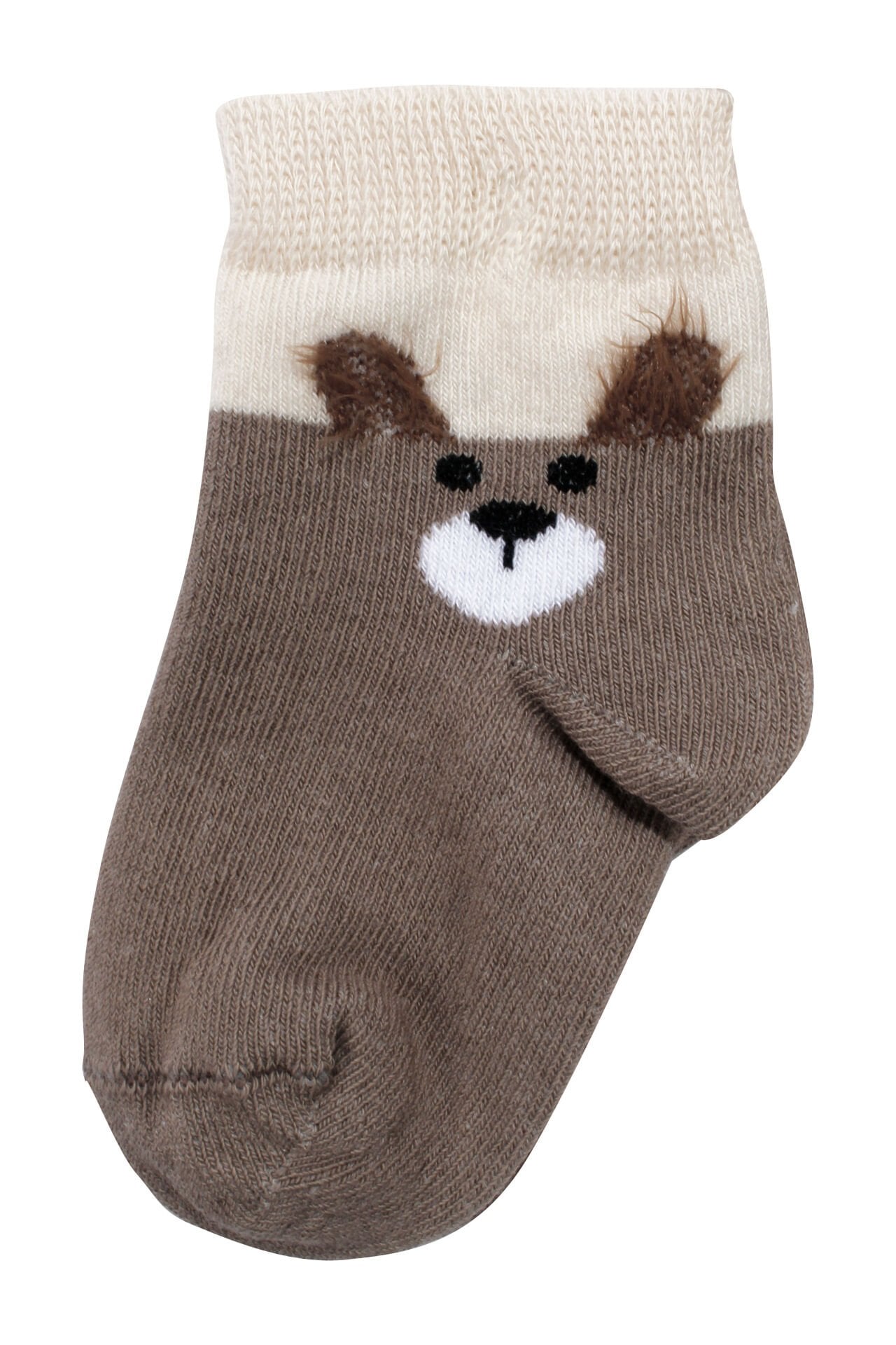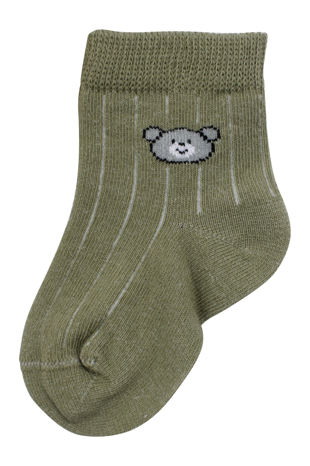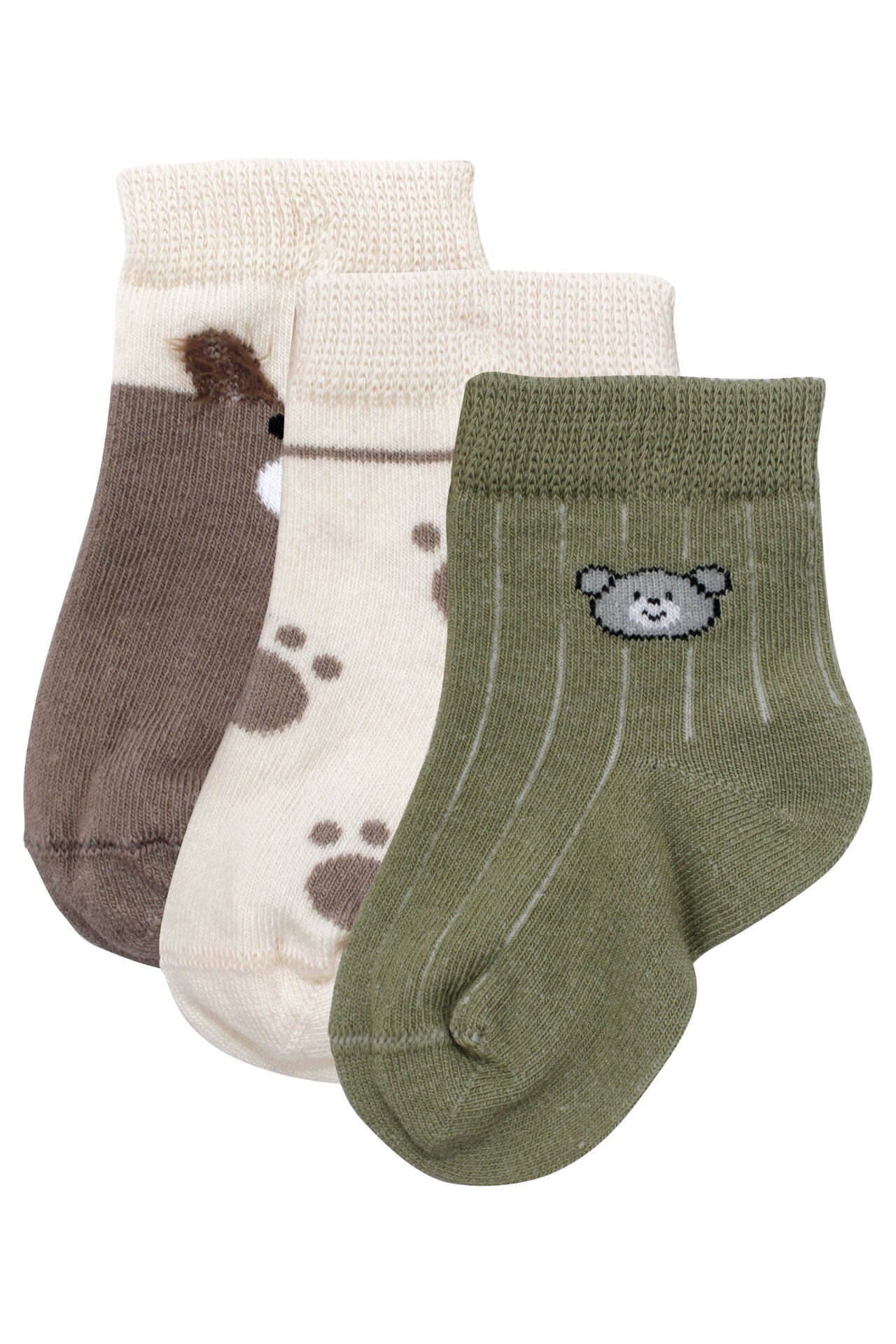 Erkek Bebek Kahve Krem Yeşil Ayıcık Desenli 3'lü Çorap Set