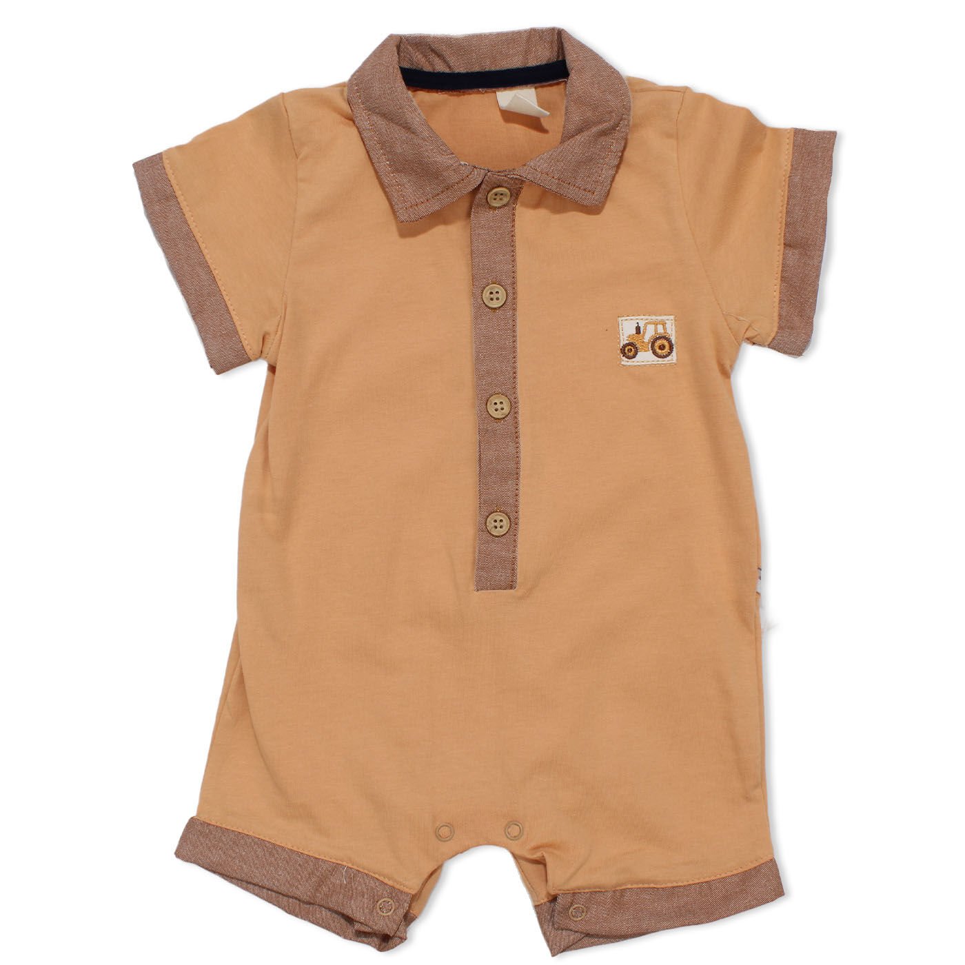 Erkek Bebek Kahve Yakalı Düğmeli Tulum