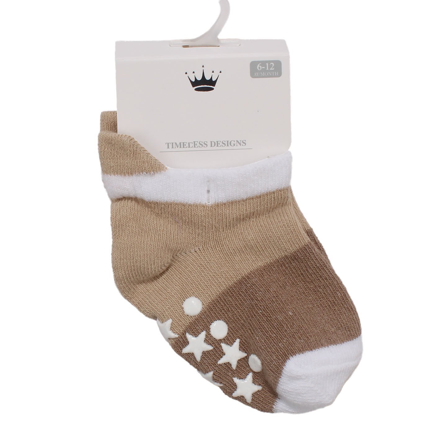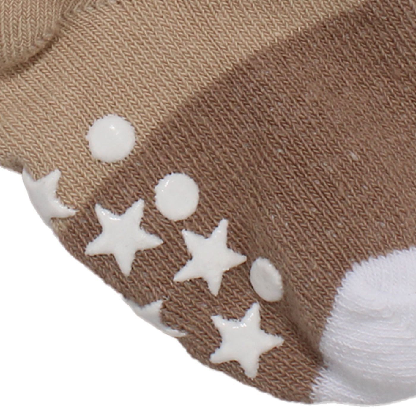 Erkek Bebek Kahve Yıldız Desenli Kaydırmaz Taban Çorap